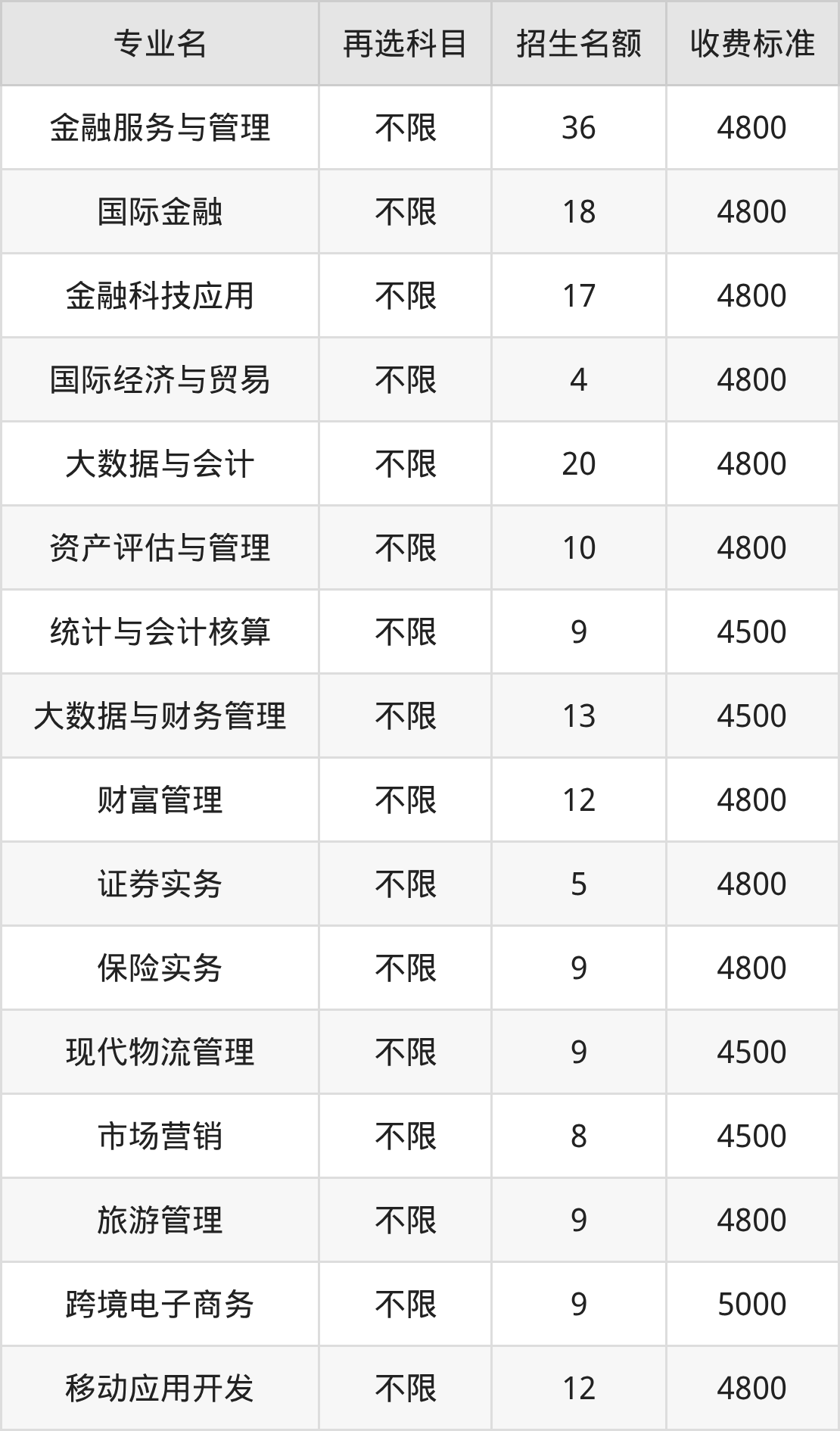 | 高职专科批 | 历史 | 大数据与财务管理 | 13 |