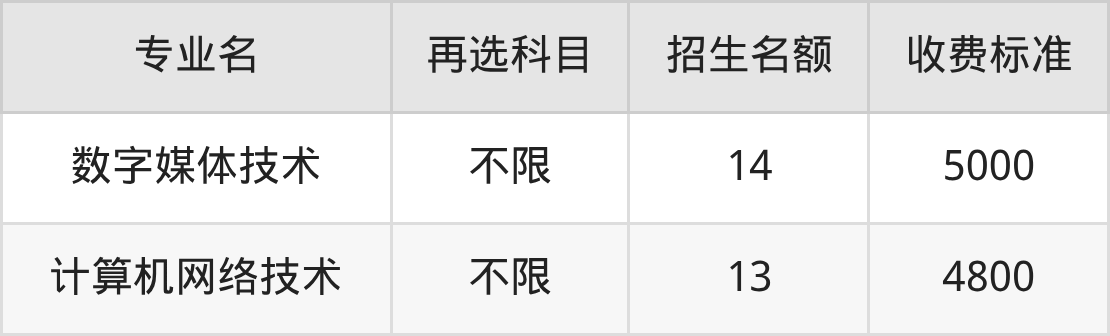 | 高职专科批 | 历史 | 数字媒体技术 | 14 |