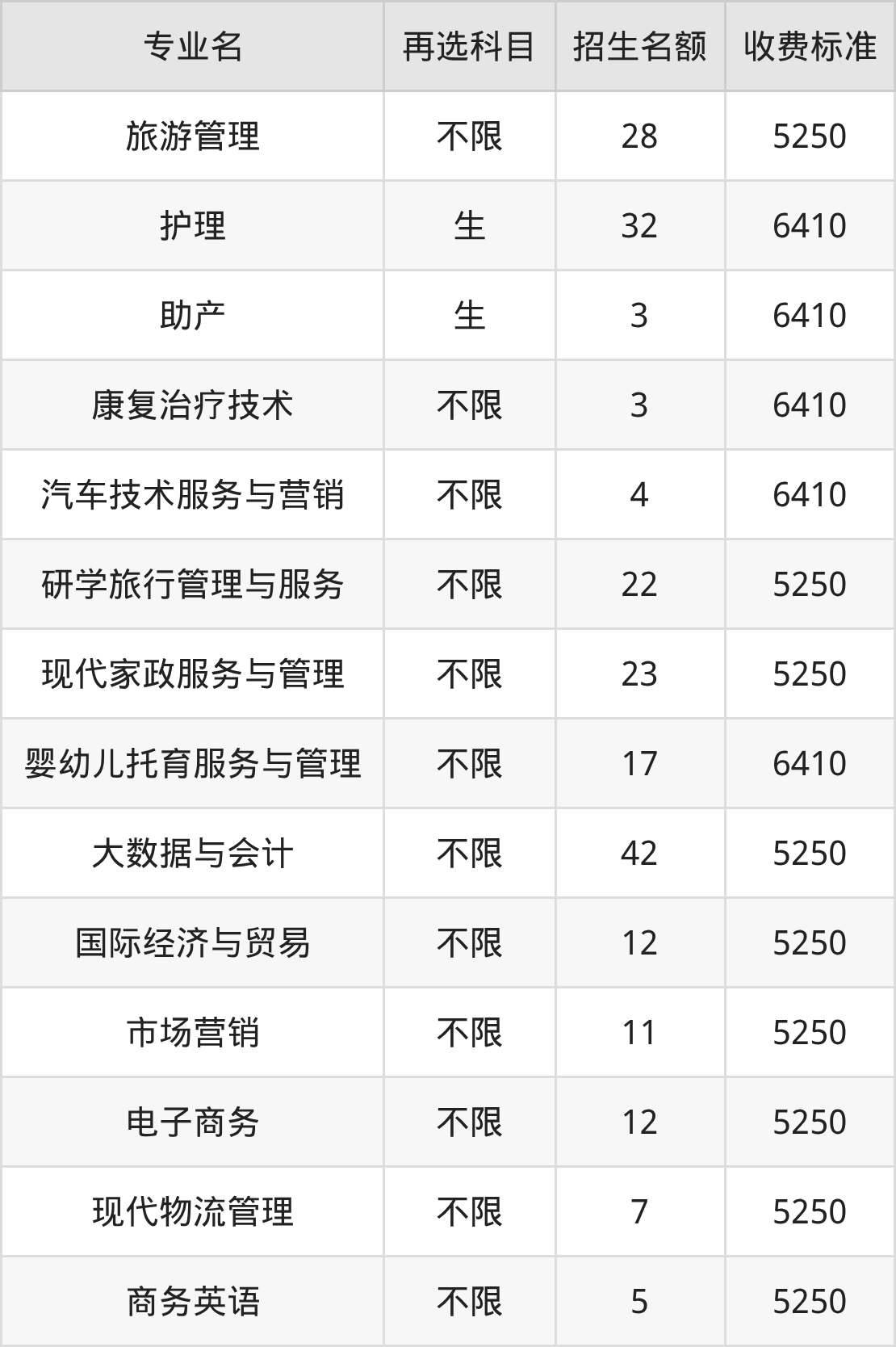 | 专科高职批 | 物理 | 旅游管理 | 10 |