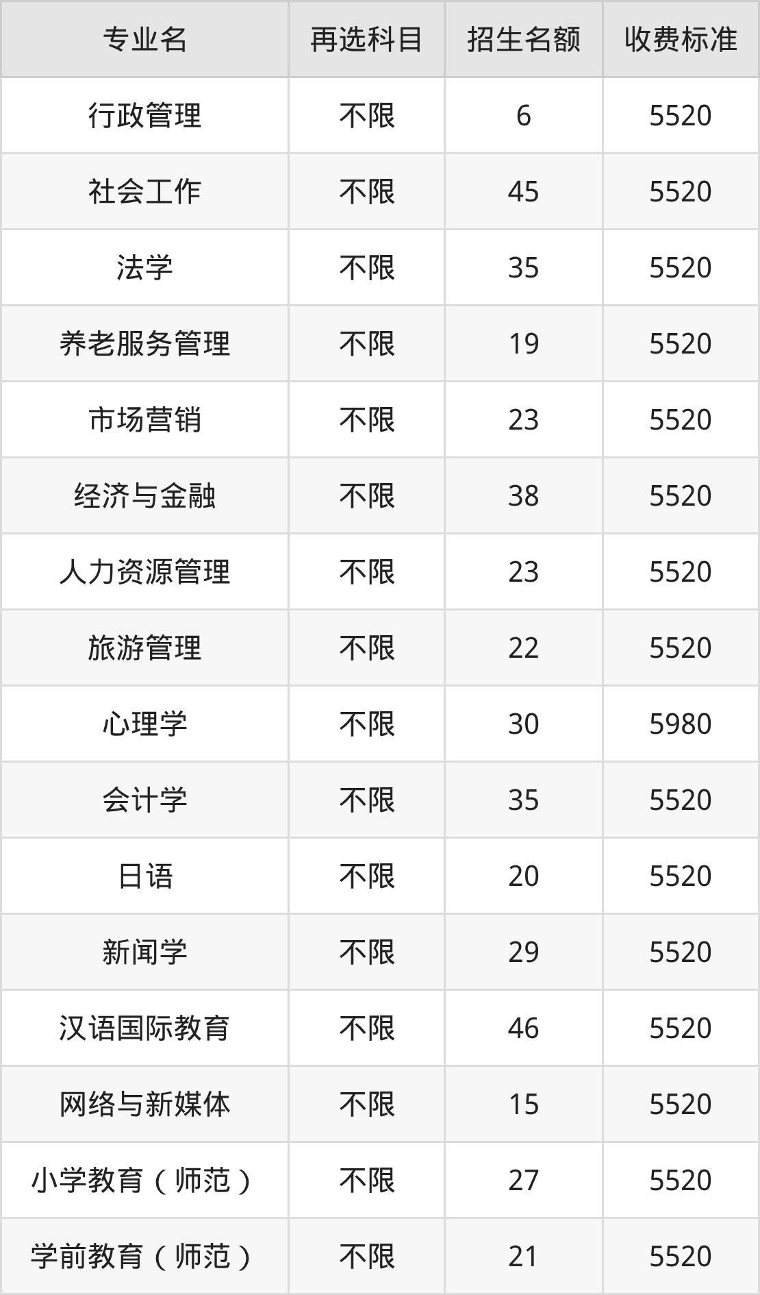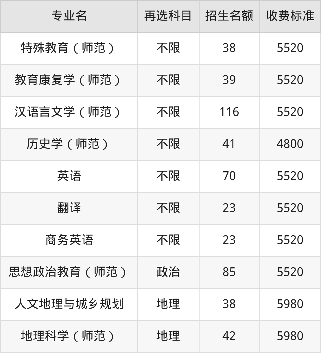 乐山师范学院在历史组本科批B段招生的各个专业,每年的学费是4800元-5980元。招生人数最多的专业是汉语言文学,2025年招116人,学费是5520元。