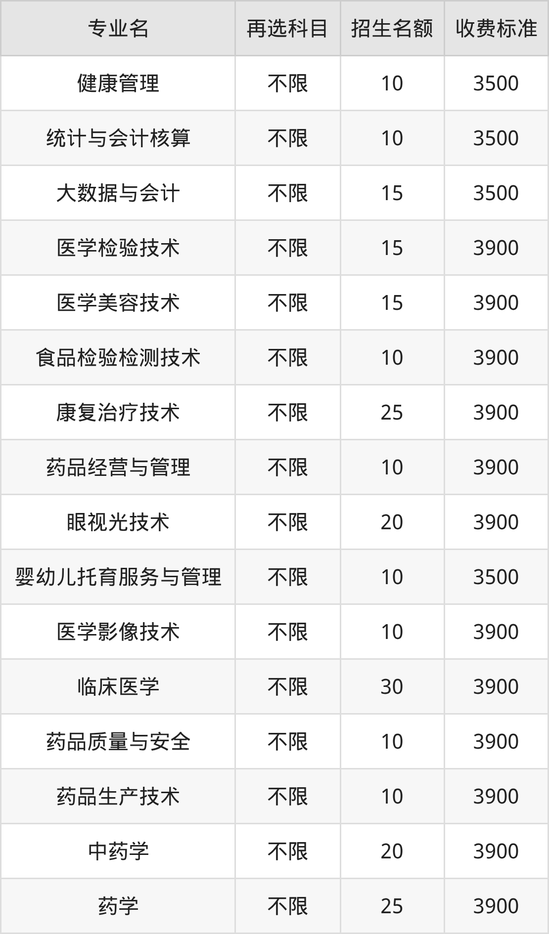 | 高职专科批 | 历史 | 药品经营与管理 | 10 |