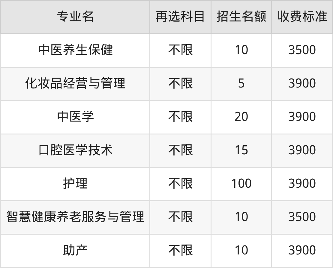 | 高职专科批 | 历史 | 中医养生保健 | 10 |