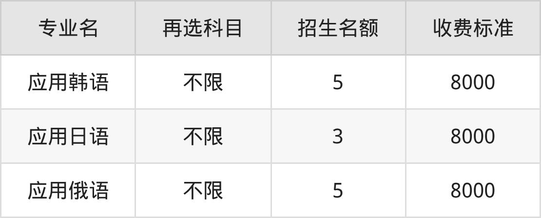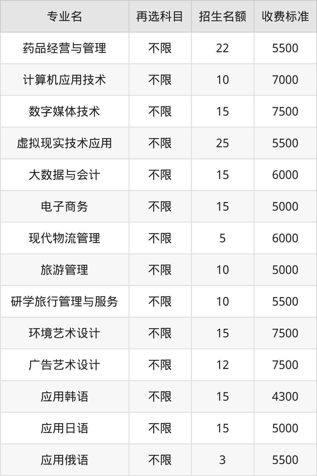 | 专科高职批 | 历史 | 应用韩语 | 15 |