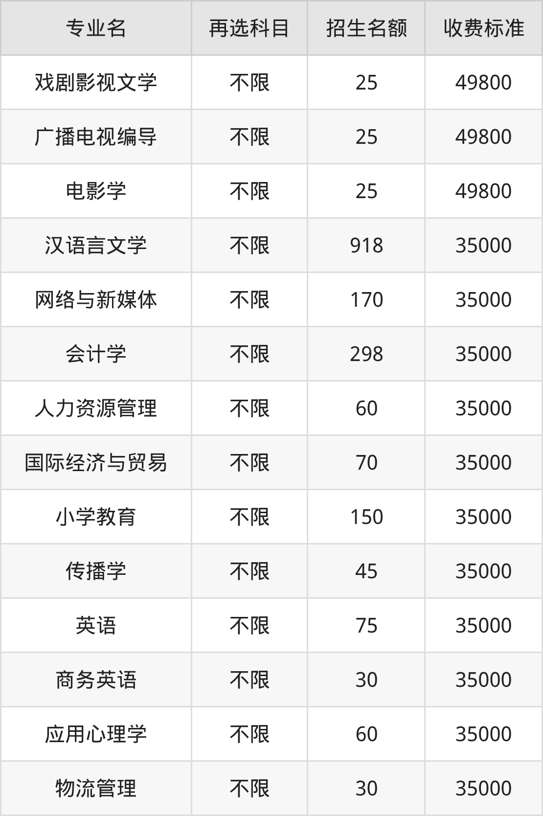 | 本科批 | 历史 | 传播学 | 15 |