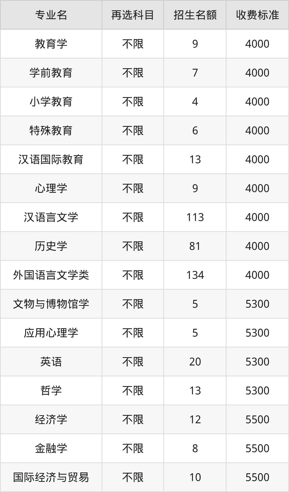 | 本科批 | 历史 | 汉语国际教育 | 13 |