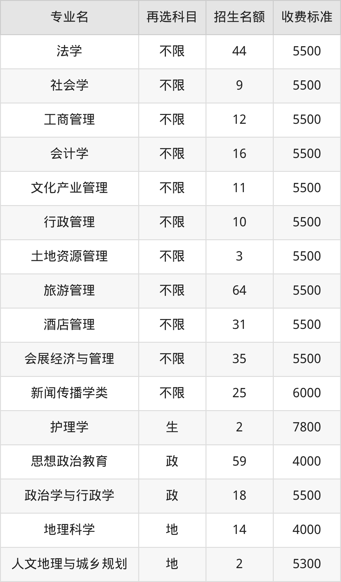 | 本科批 | 历史 | 地理科学 | 14 |