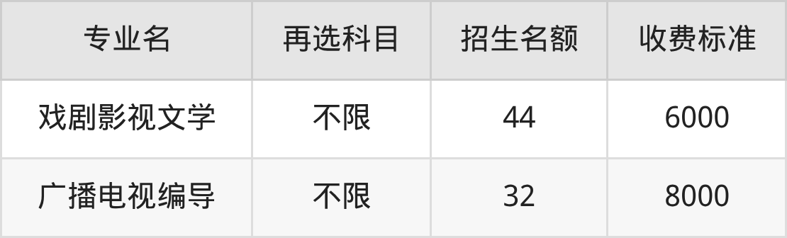 | 本科批 | 物理 | 广播电视编导 | 13 |