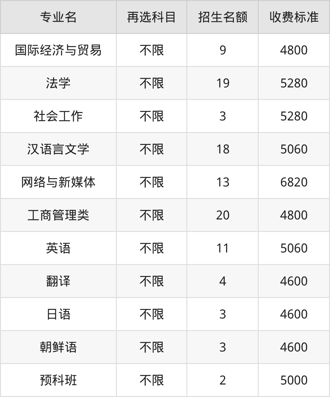 | 本科批 | 历史 | 朝鲜语 | 3 |