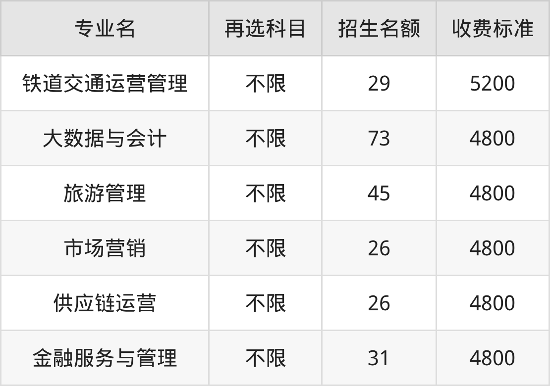 | 高职专科批 | 历史 | 铁道交通运营管理 | 29 |