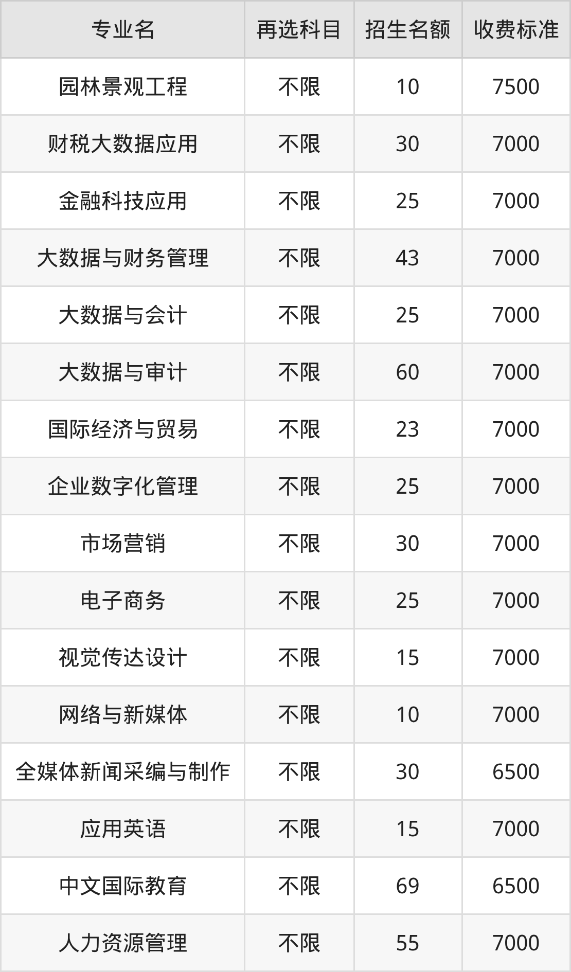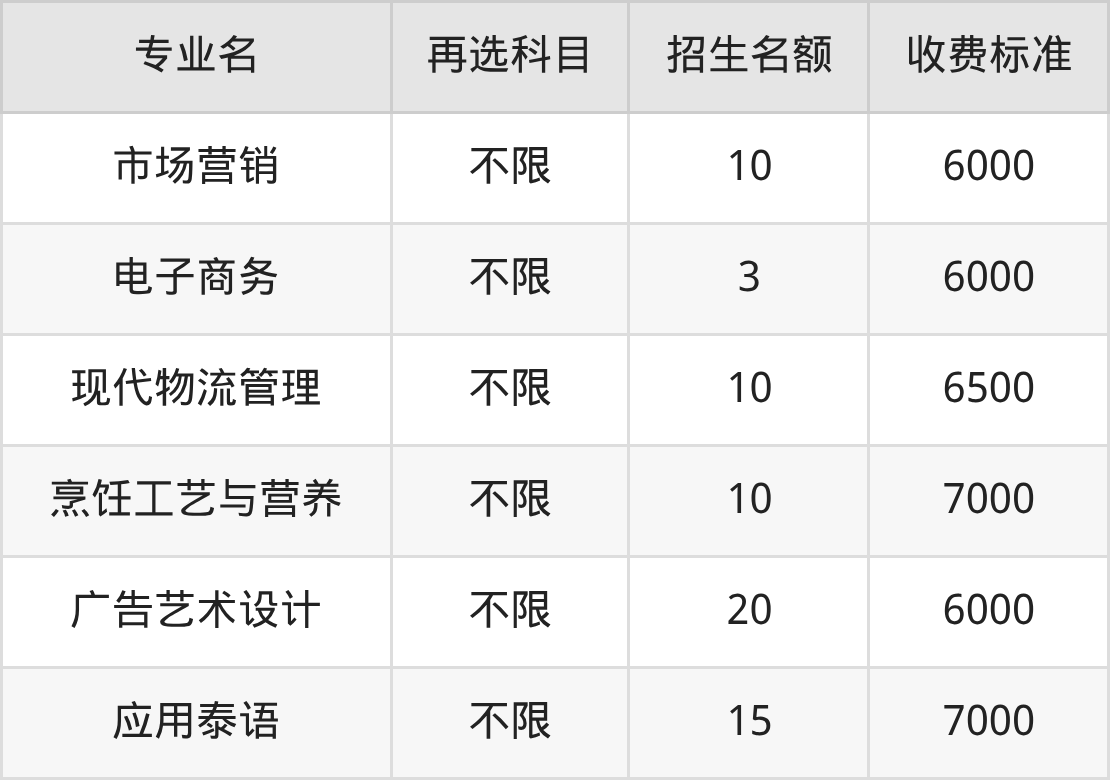 | 高职高专批 | 物理 | 市场营销 | 10 |