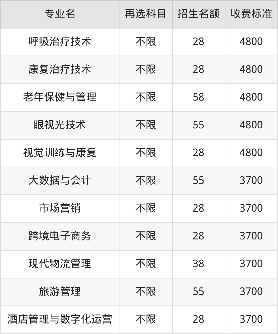 | 高职专科批 | 物理 | 旅游管理 | 55 |