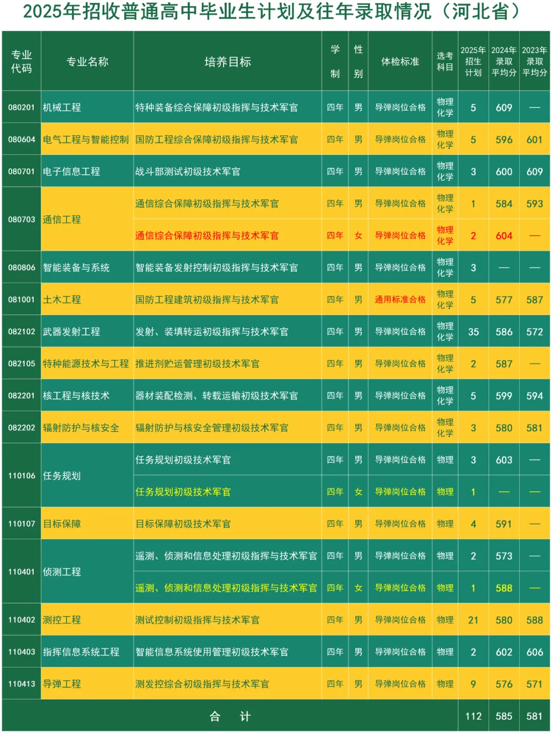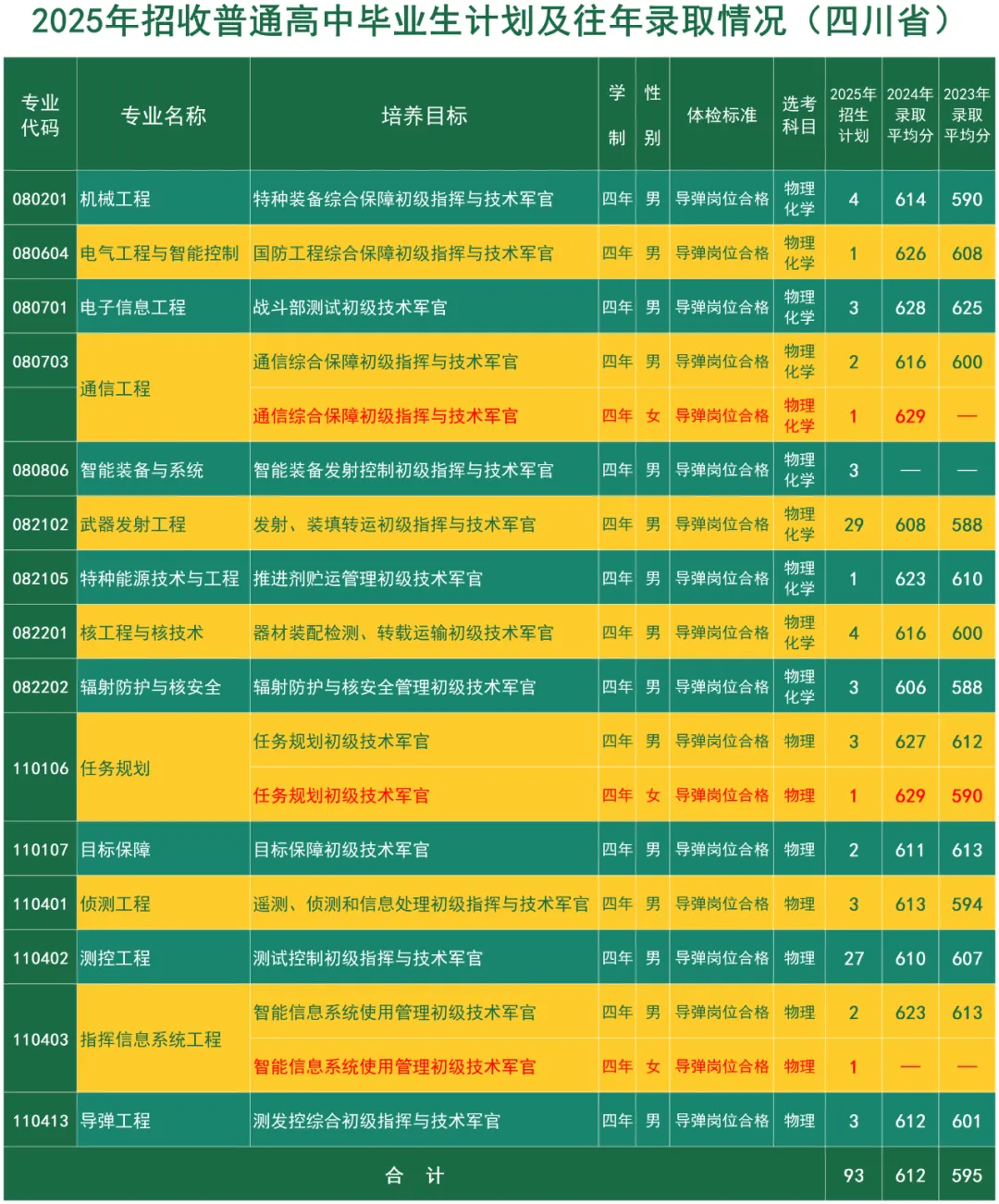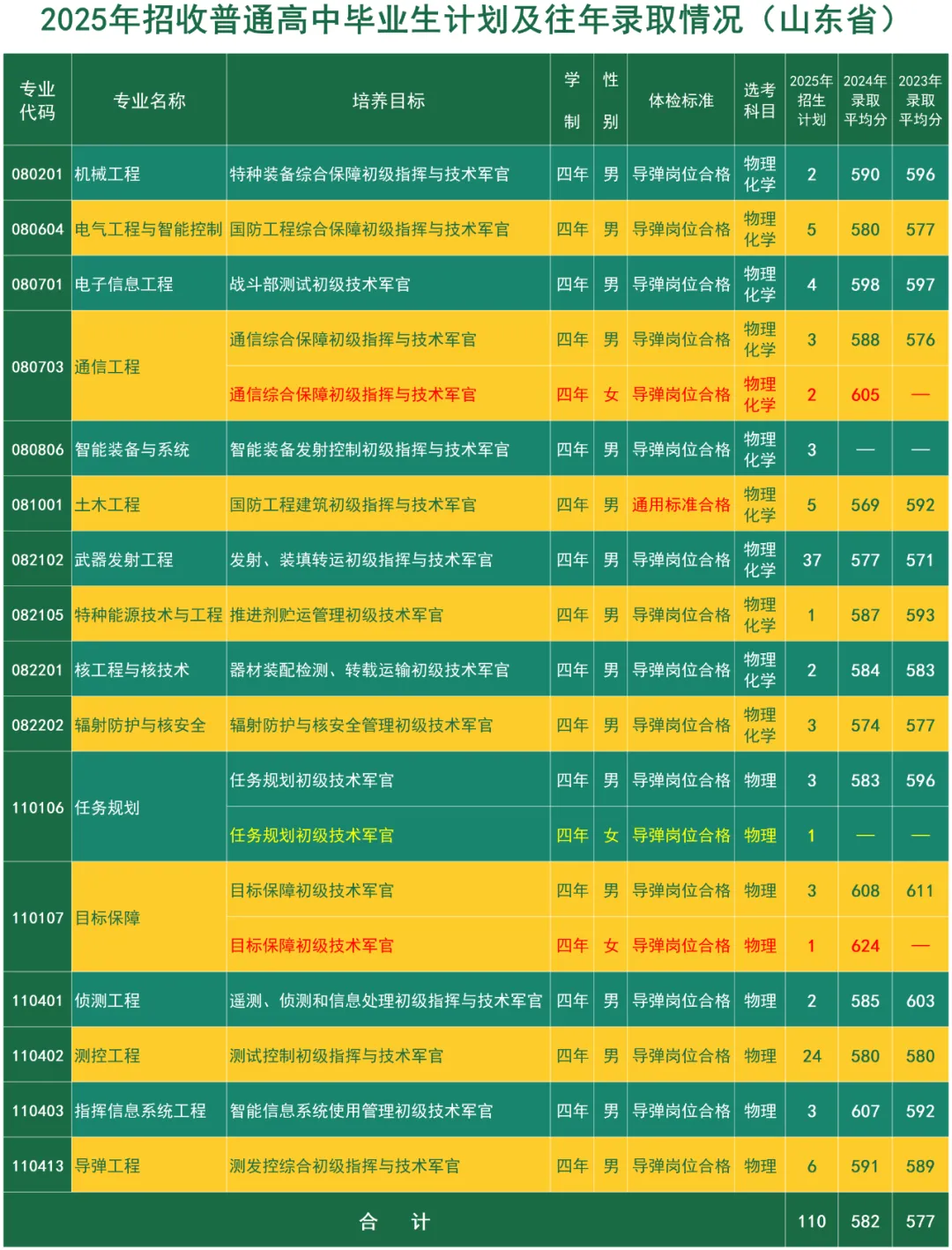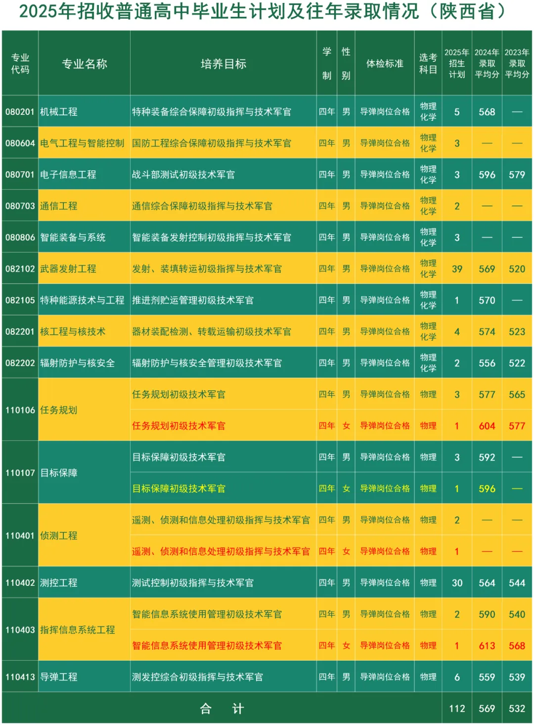 火箭军工程大学2025年面向山东、河南、四川、河北等多个高考省市招生,招生专业包含了机械工程、电气工程及其自动化、电子信息工程、通信工程、土木工程、武器发射工程、特种能源技术与工程、核工程与核技术、辐射防护与核安全、目标工程、火力指挥与控制工程 。