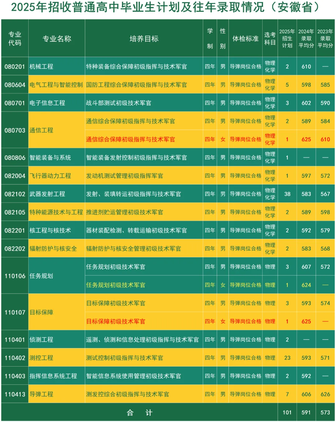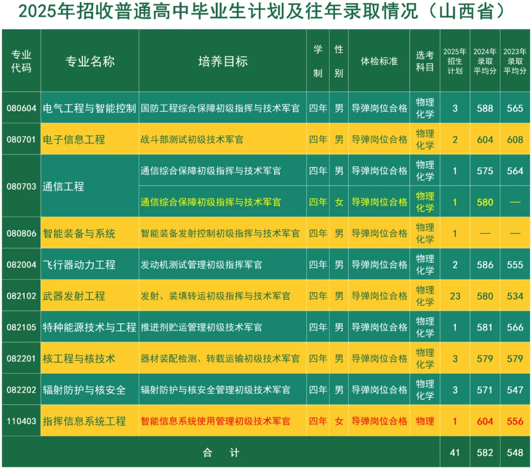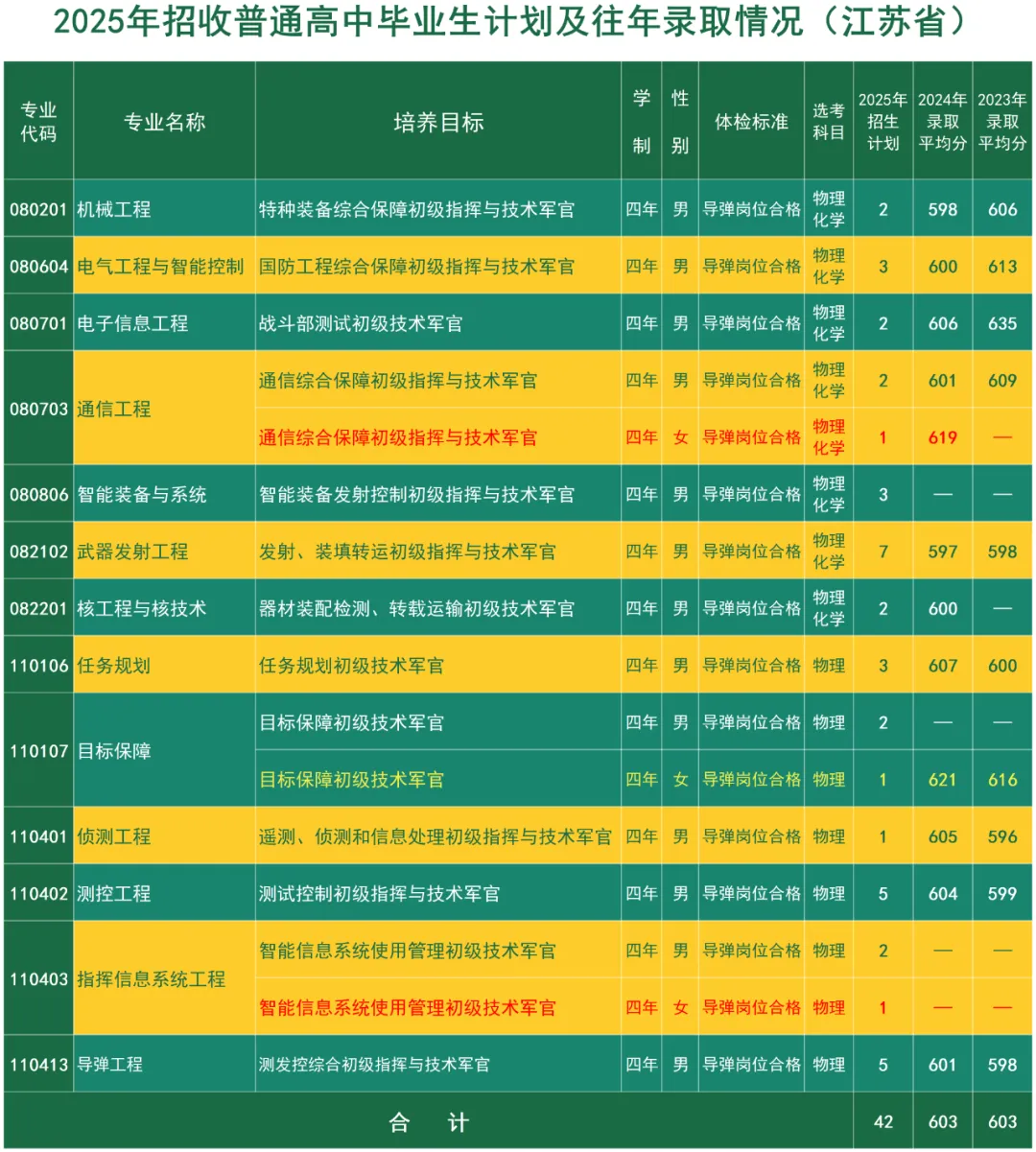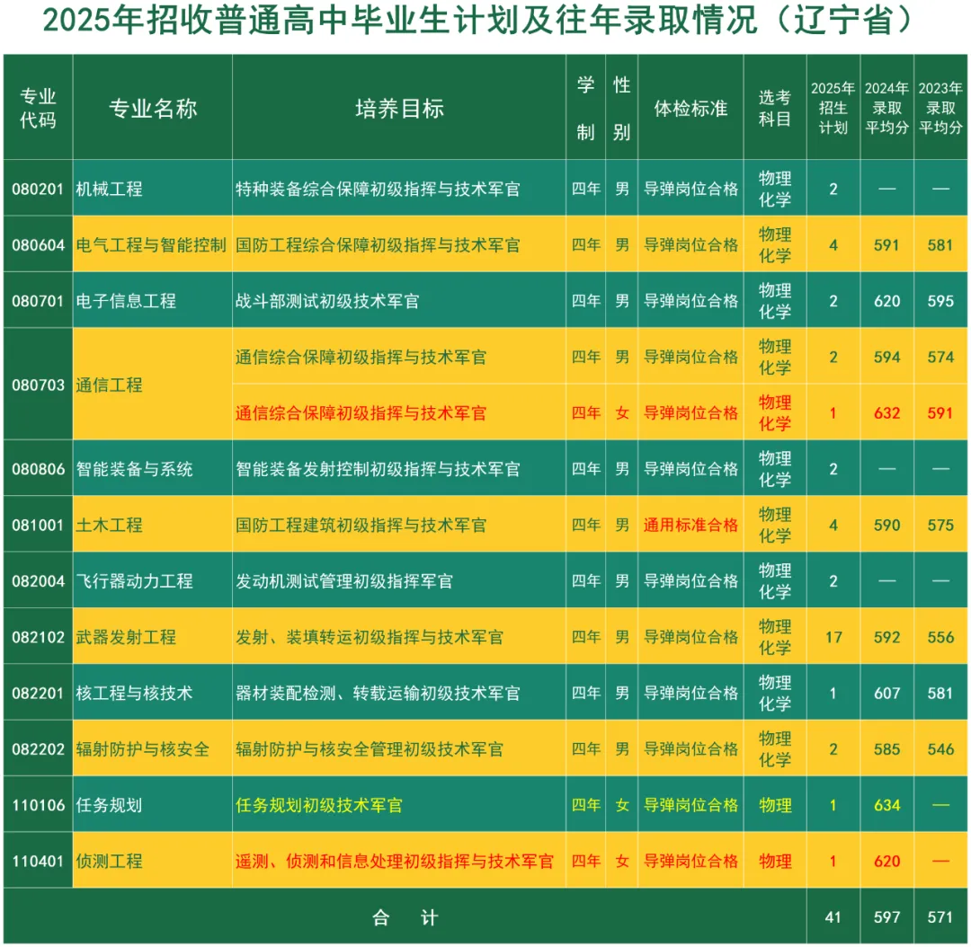 火箭军工程大学2025年面向山东、河南、四川、河北等多个高考省市招生,招生专业包含了机械工程、电气工程及其自动化、电子信息工程、通信工程、土木工程、武器发射工程、特种能源技术与工程、核工程与核技术、辐射防护与核安全、目标工程、火力指挥与控制工程 。