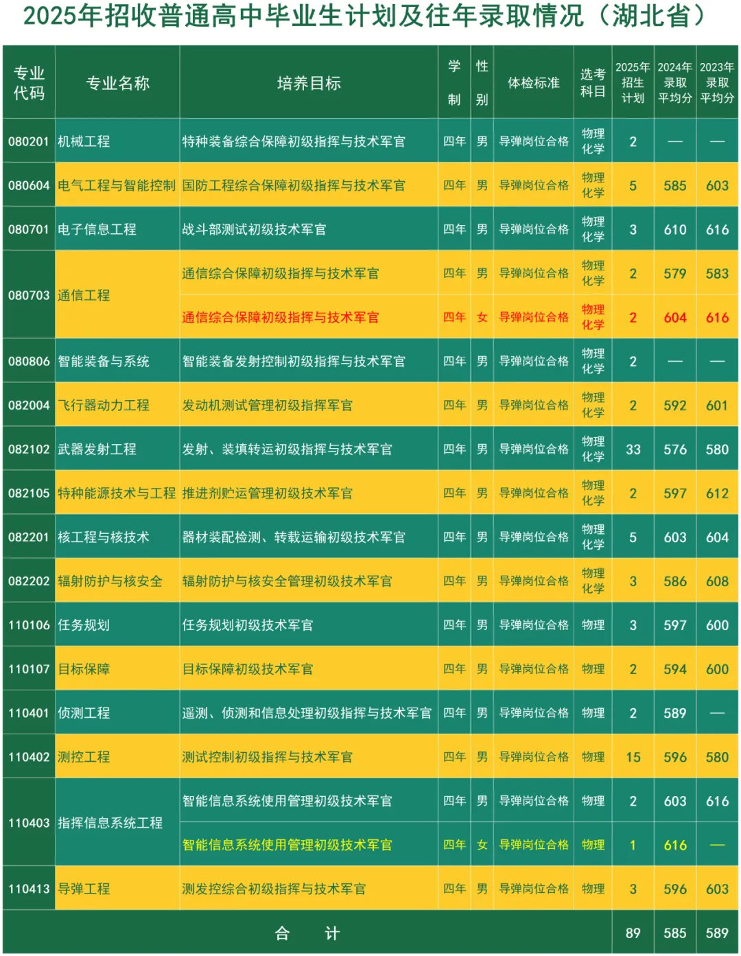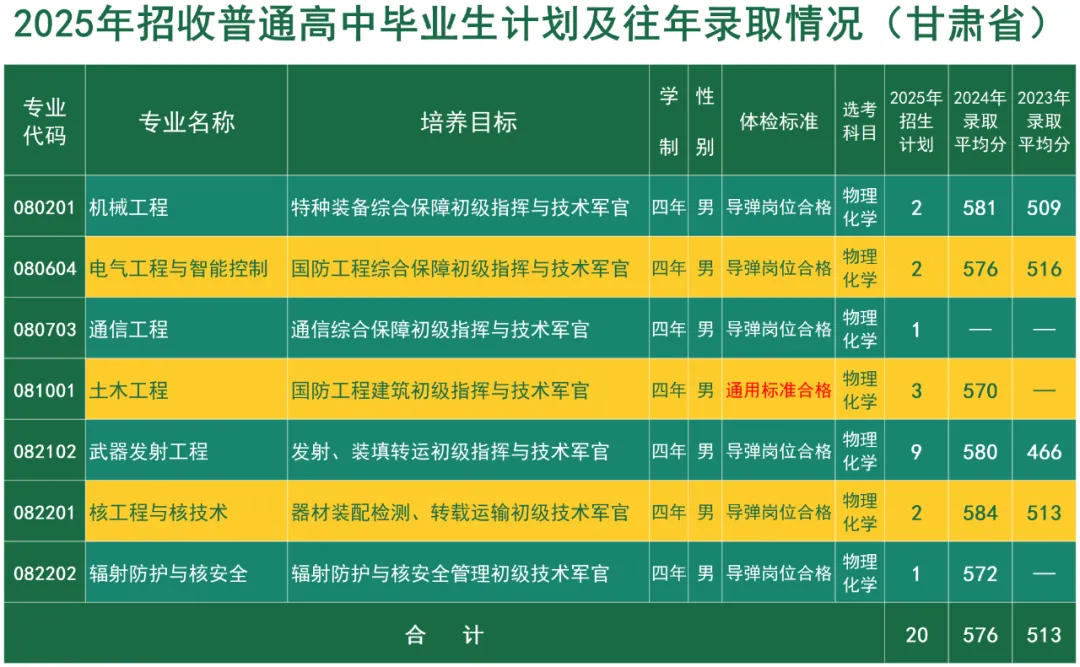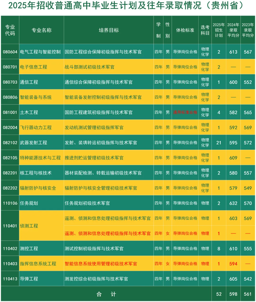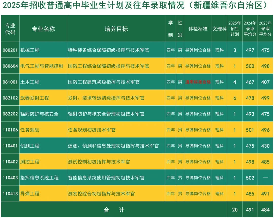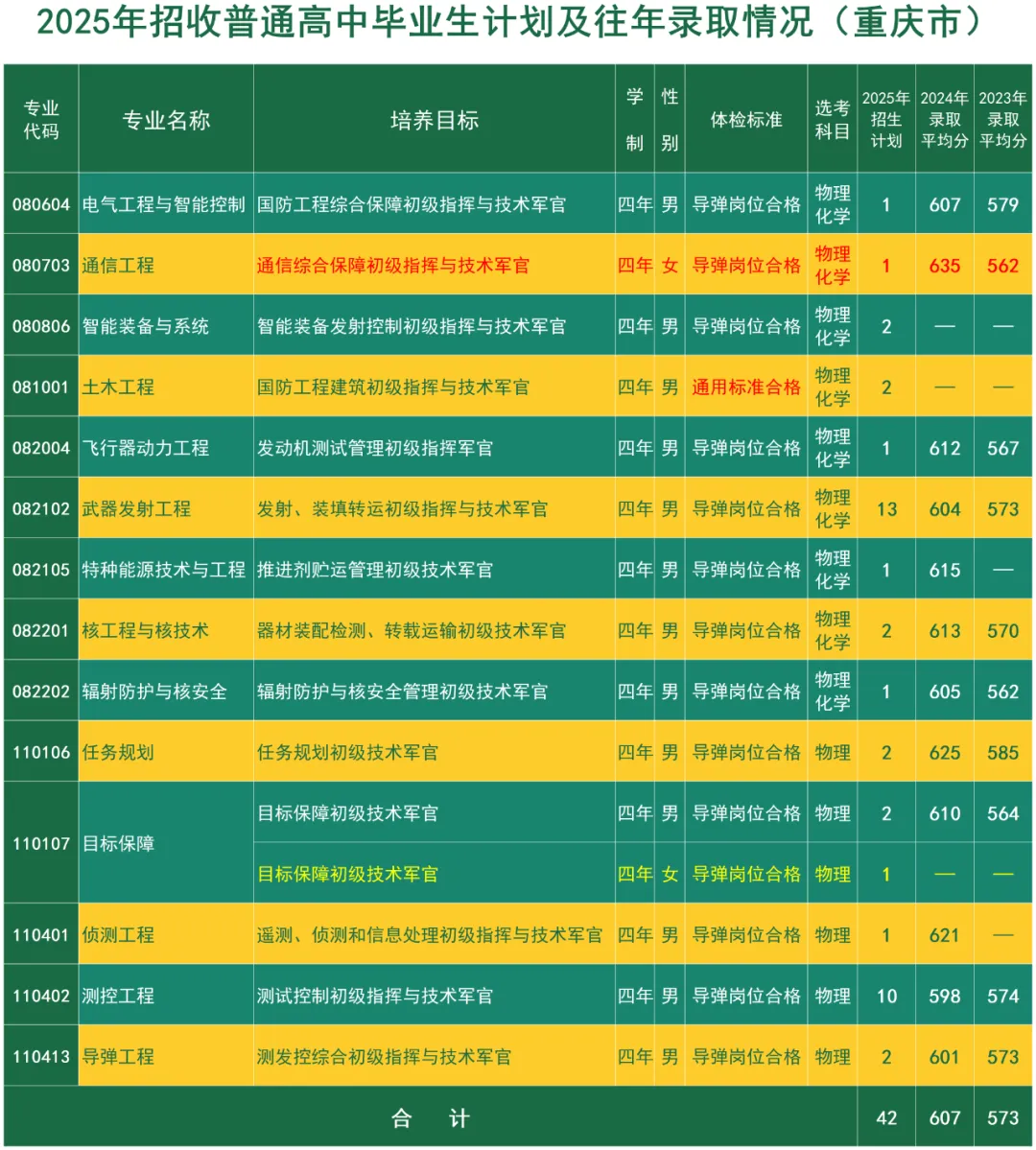 火箭军工程大学2025年面向山东、河南、四川、河北等多个高考省市招生,招生专业包含了机械工程、电气工程及其自动化、电子信息工程、通信工程、土木工程、武器发射工程、特种能源技术与工程、核工程与核技术、辐射防护与核安全、目标工程、火力指挥与控制工程 。