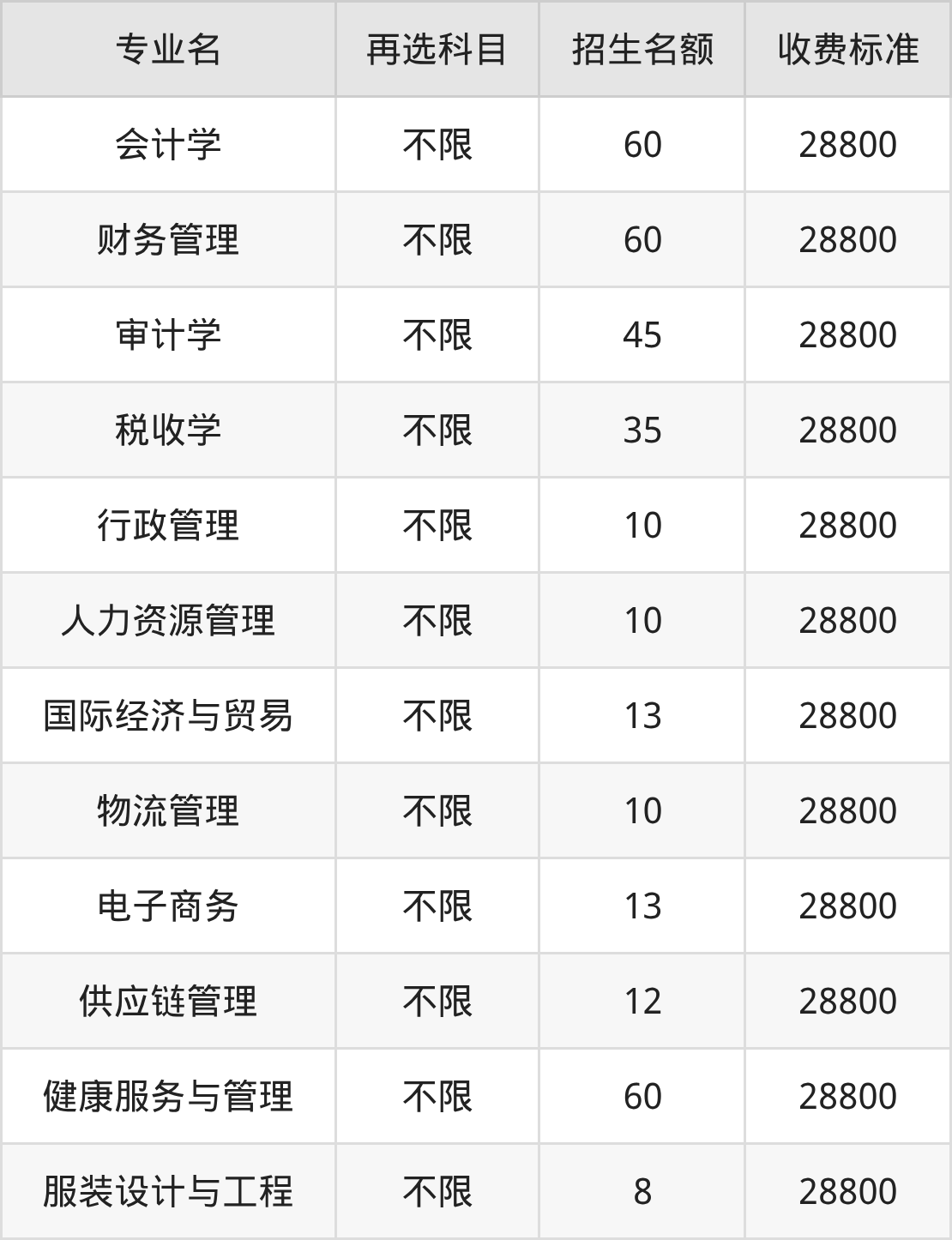 陕西科技大学镐京学院在历史组本科批招生的各个专业,每年的学费是28800元。招生人数最多的专业是会计学,2025年招60人,学费是28800元。