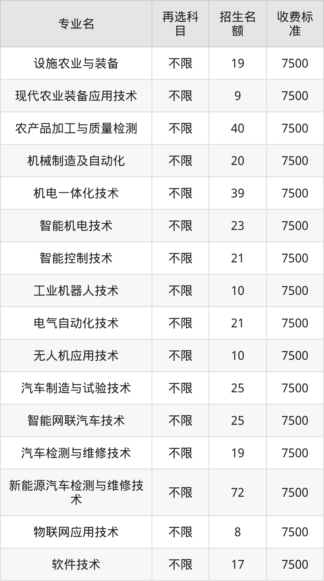 | 高职高专批 | 物理 | 智能机电技术 | 36 |