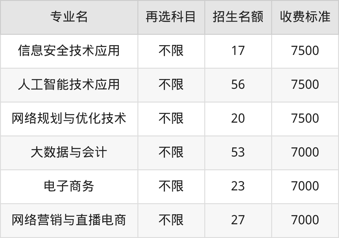 | 高职高专批 | 物理 | 软件技术 | 26 |