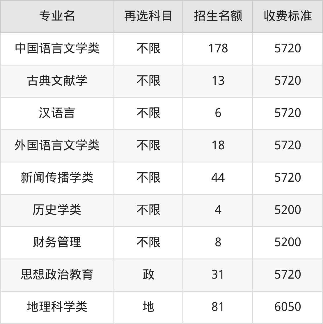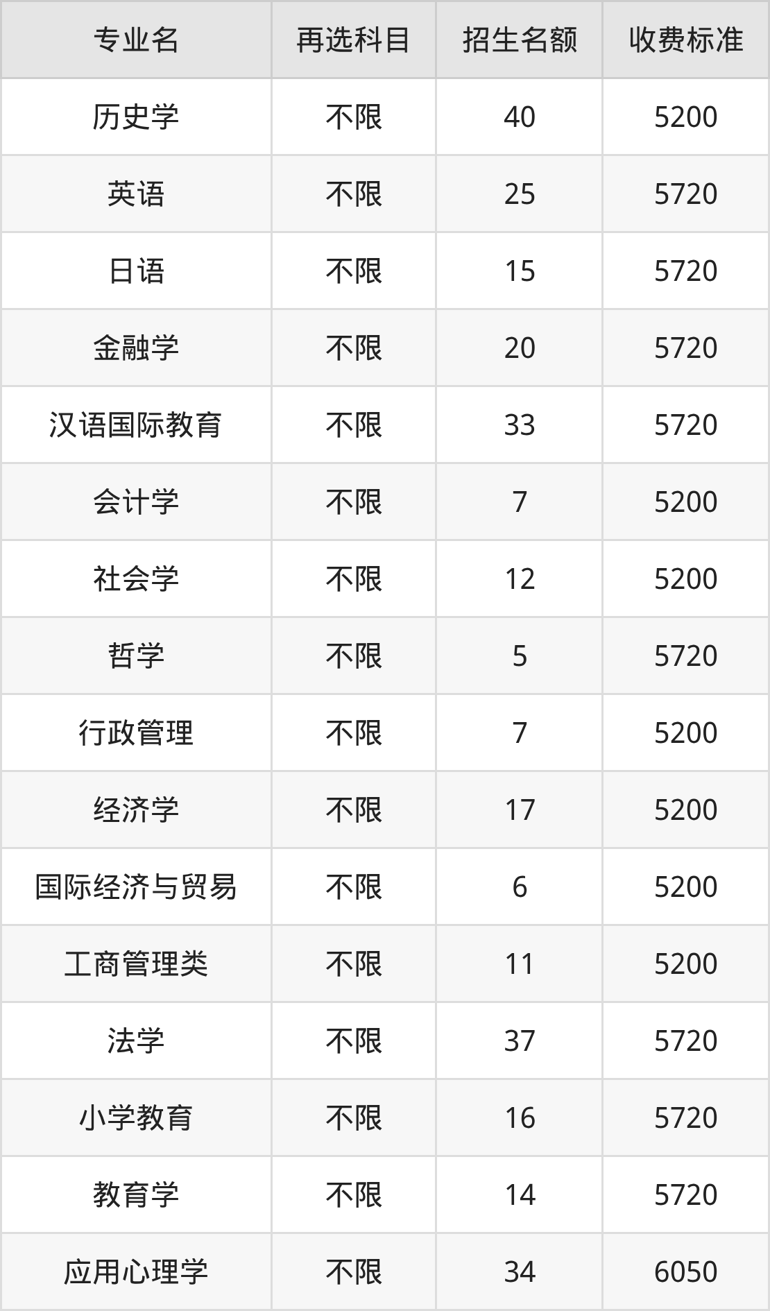| 本科批 | 历史 | 国际经济与贸易 | 6 |