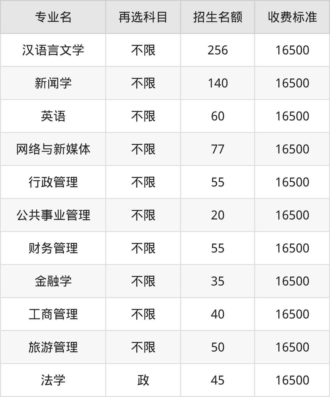 | 本科批 | 历史 | 汉语言文学 | 256 |