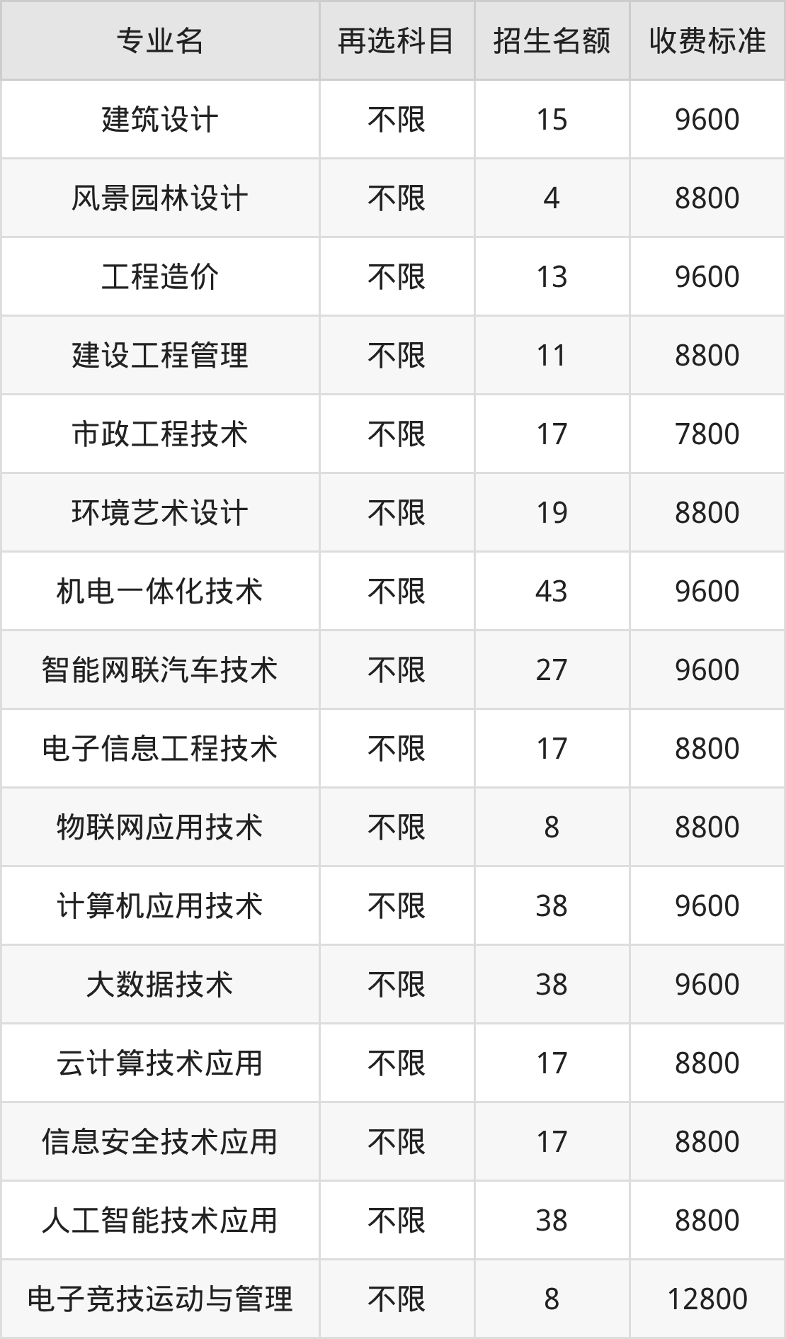 | 高职专科批 | 历史 | 电子竞技运动与管理 | 8 |