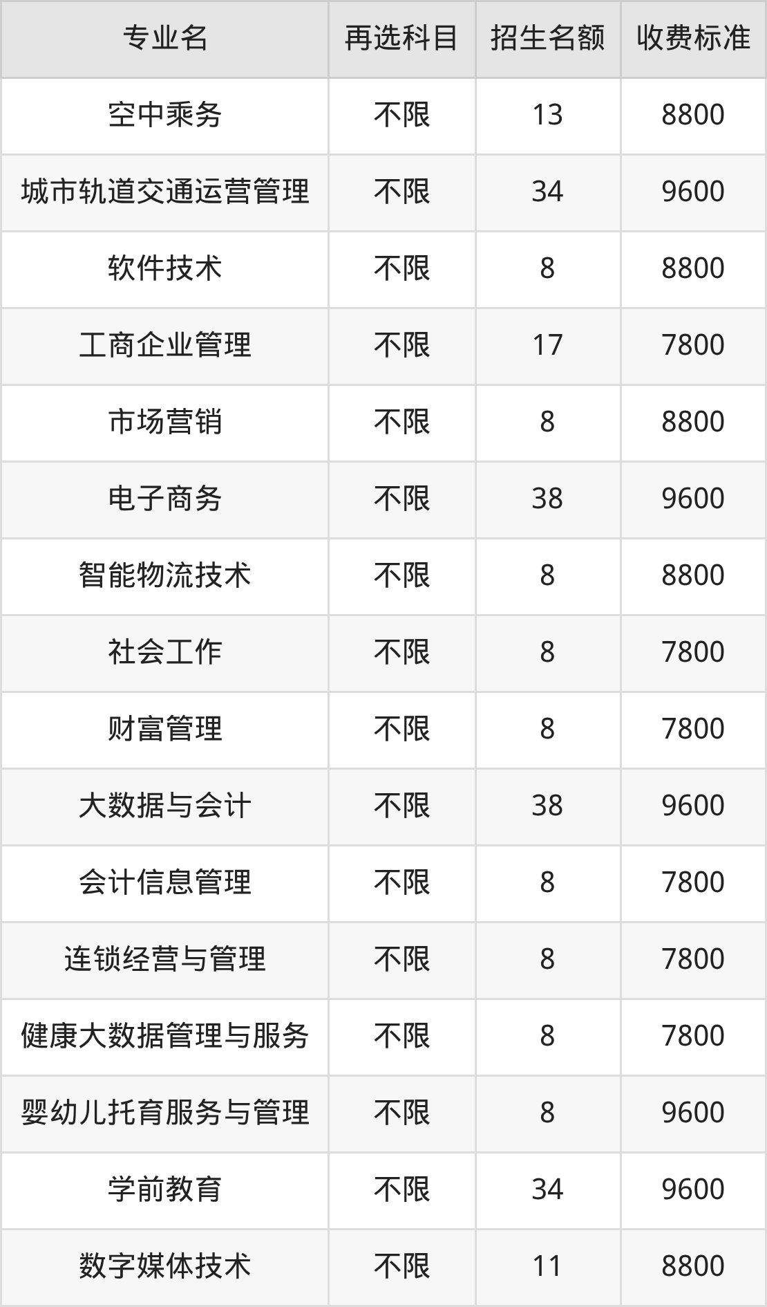 | 高职专科批 | 历史 | 连锁经营与管理 | 8 |