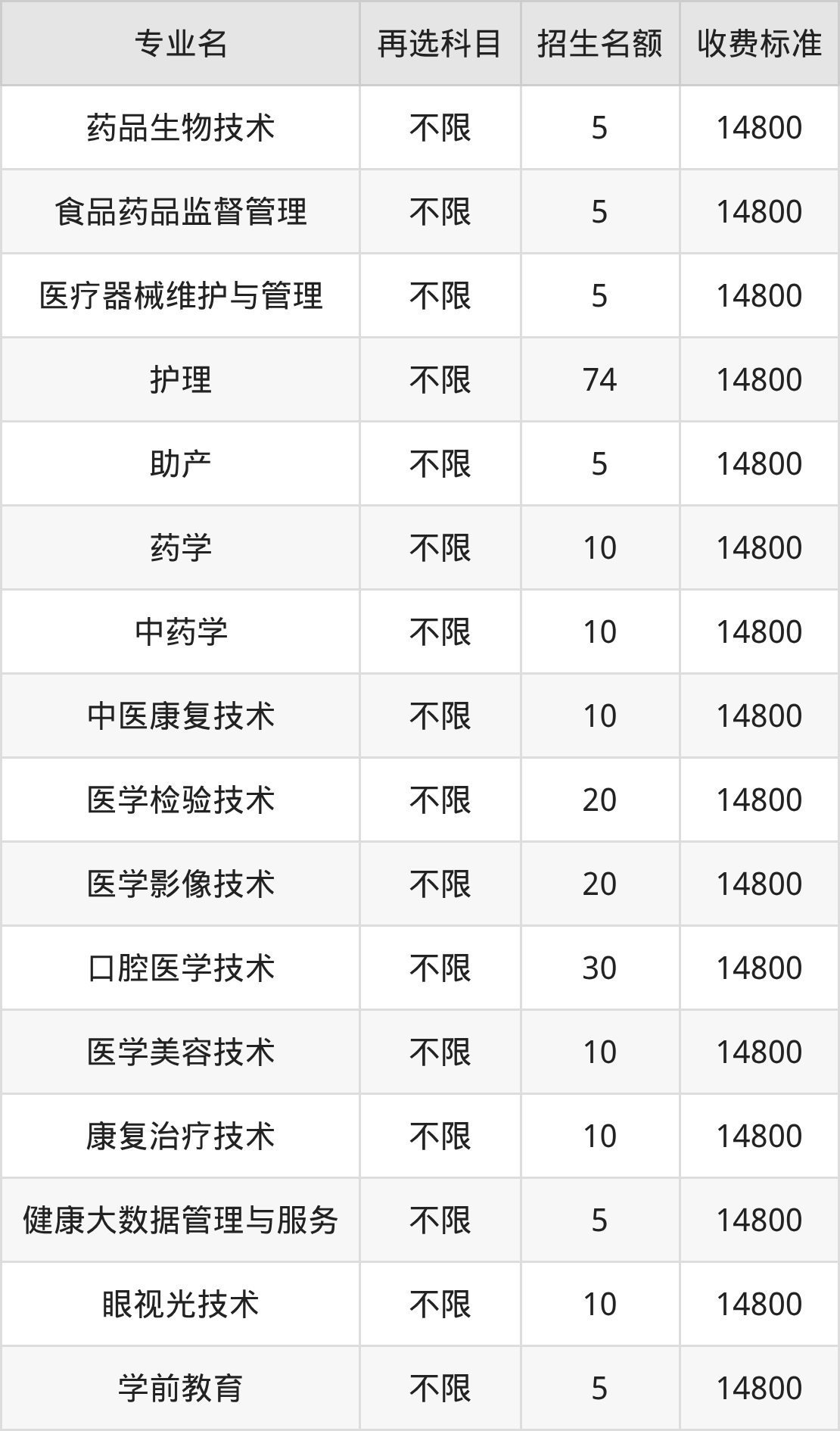 10.医学影像技术:学费是14800元