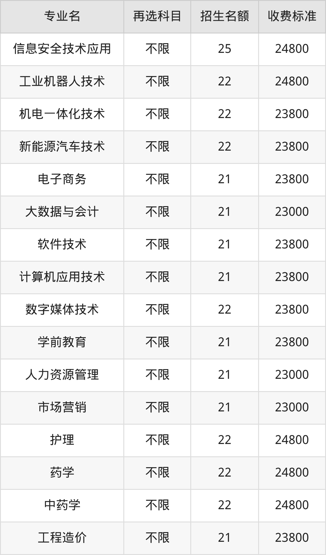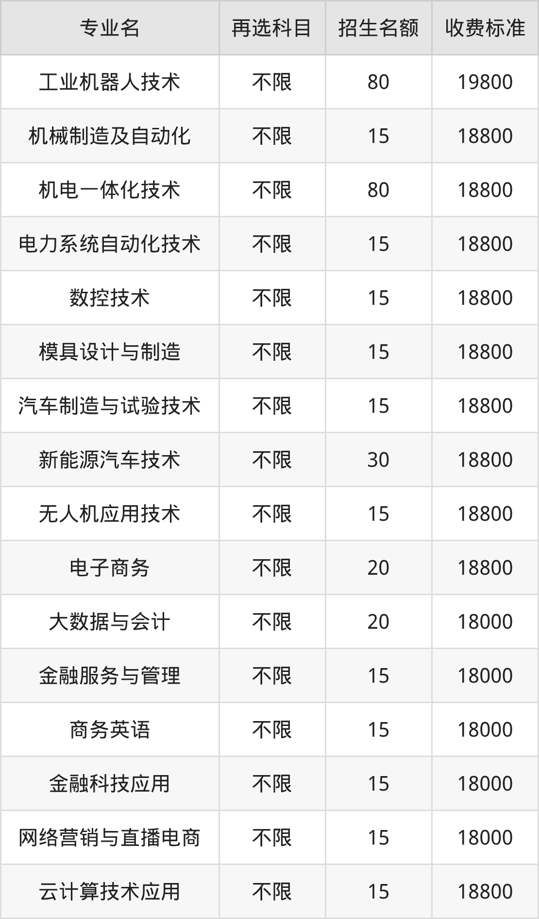 | 专科高职批 | 历史 | 金融科技应用 | 15 |