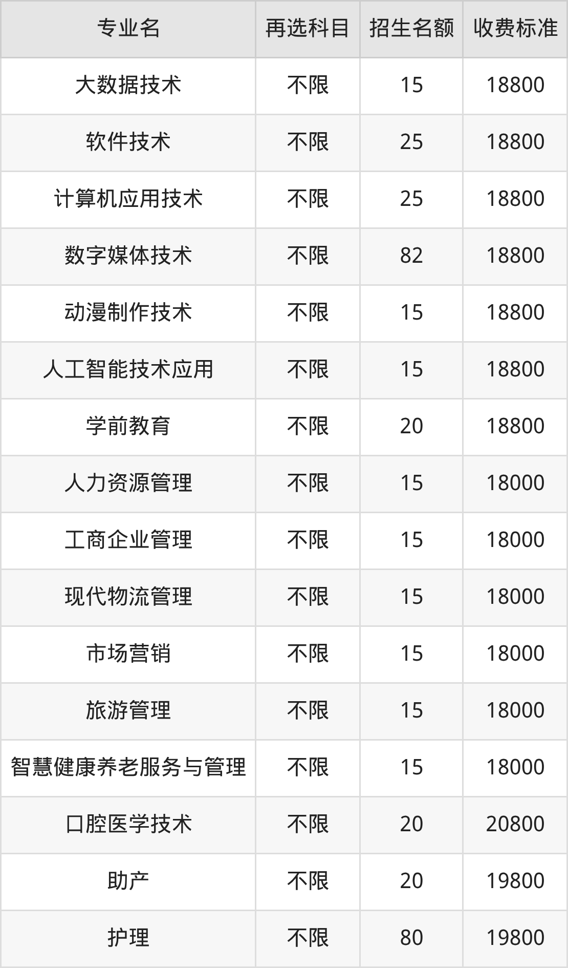 | 专科高职批 | 历史 | 人力资源管理 | 15 |