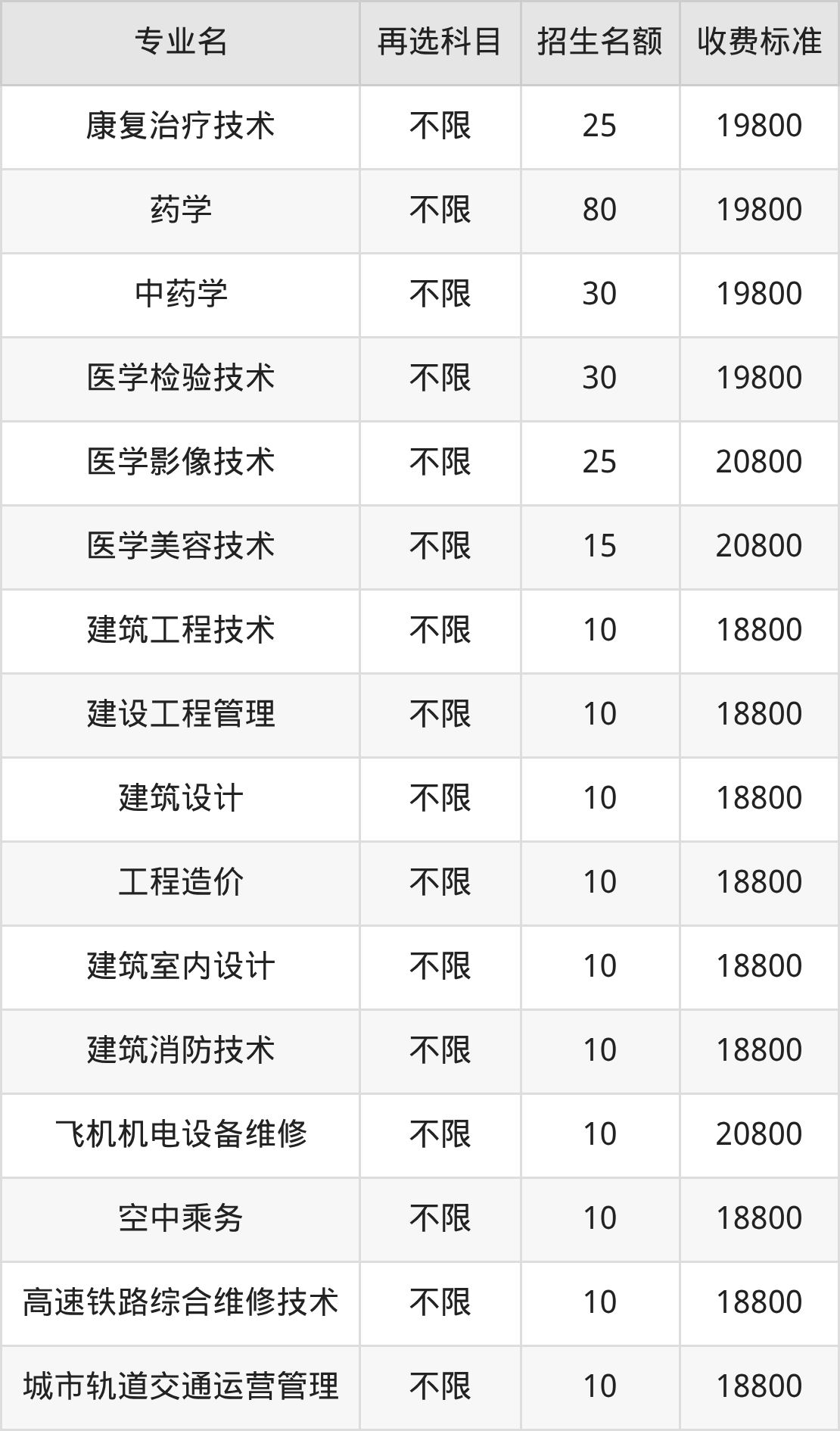 | 专科高职批 | 历史 | 旅游管理 | 15 |