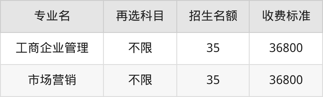 | 专科高职批 | 物理 | 工商企业管理 | 30 |