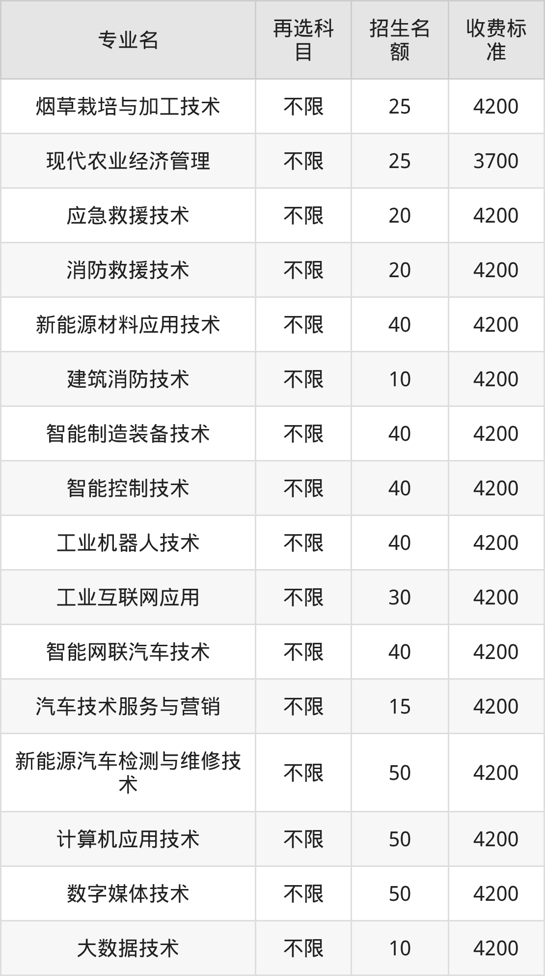 | 高职专科批 | 历史 | 烟草栽培与加工技术 | 25 |