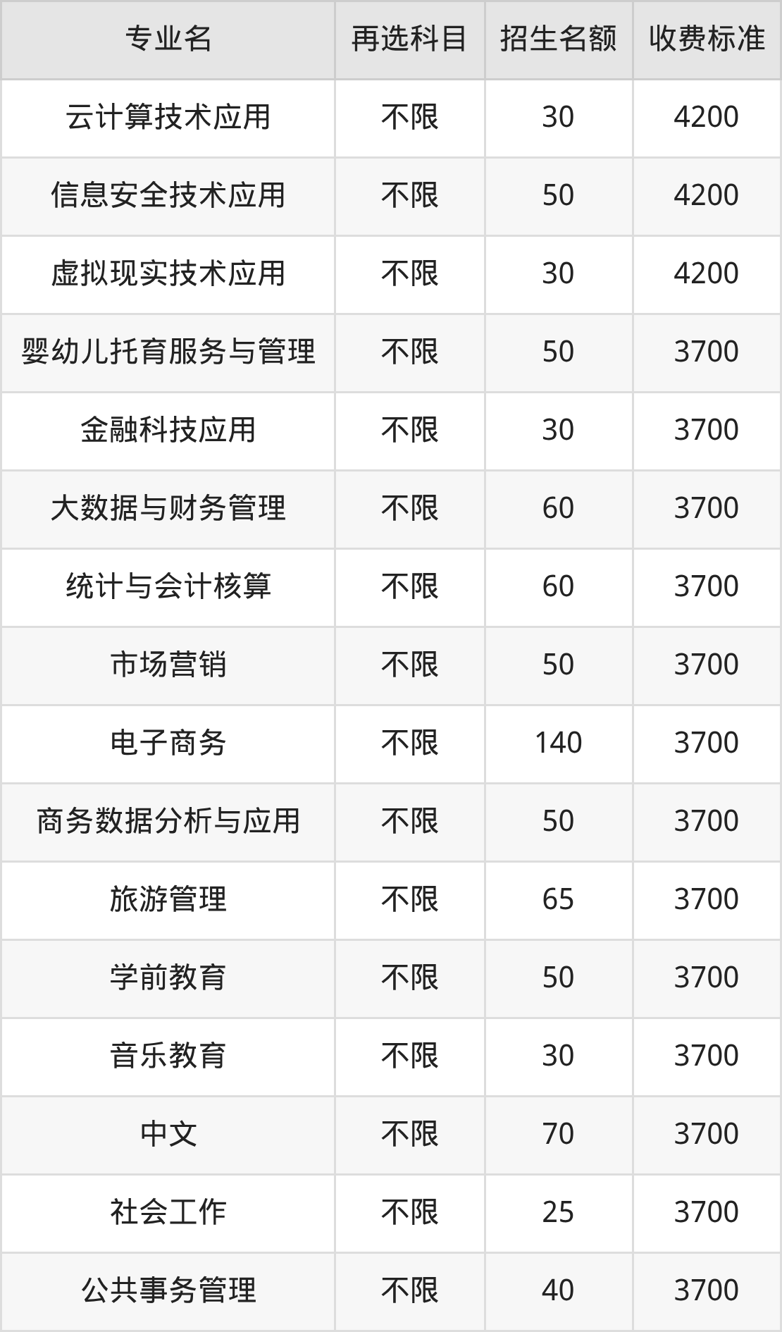 | 高职专科批 | 物理 | 计算机应用技术 | 100 |