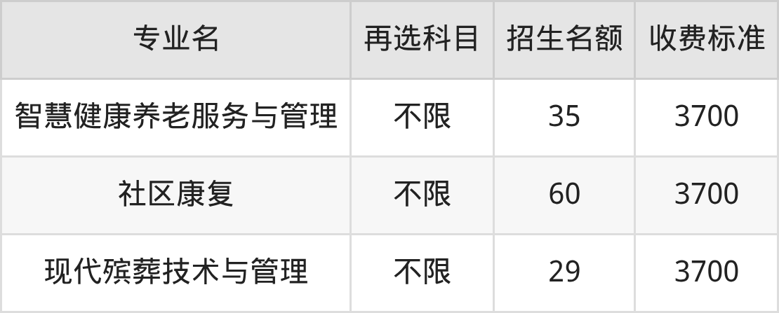 | 高职专科批 | 历史 | 智慧健康养老服务与管理 | 35 |
