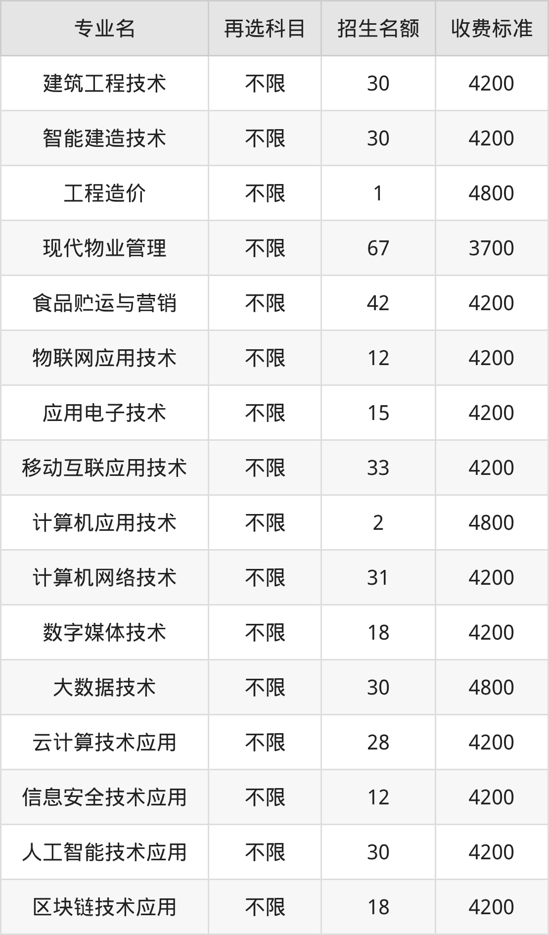 | 高职专科批 | 历史 | 计算机应用技术 | 2 |