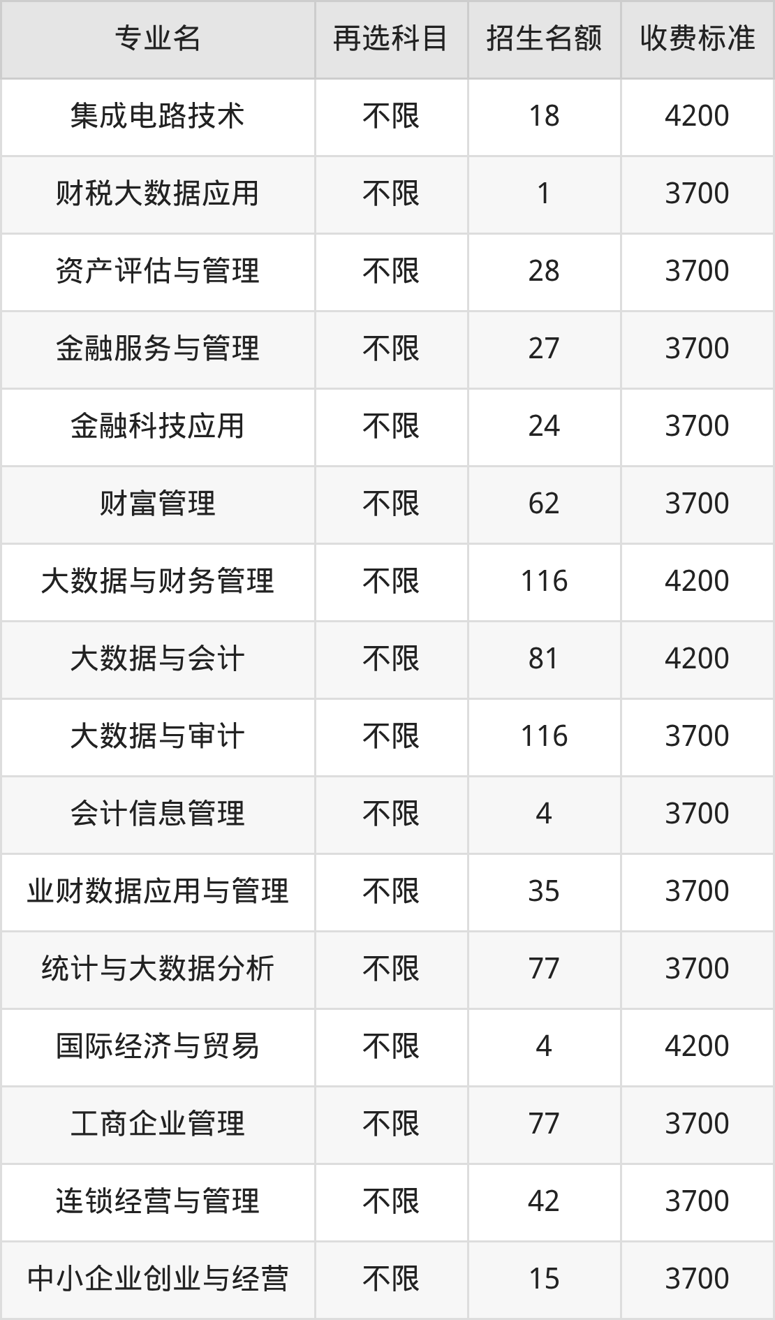 | 高职专科批 | 物理 | 金融服务与管理 | 12 |