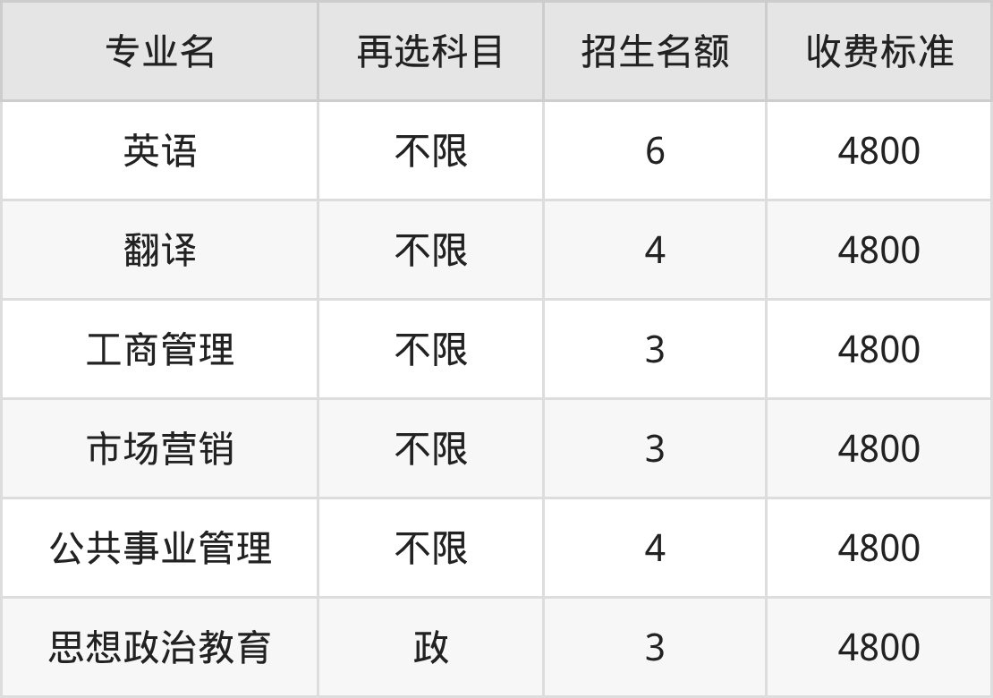 | 本科批B段 | 物理 | 思想政治教育 | 6 |