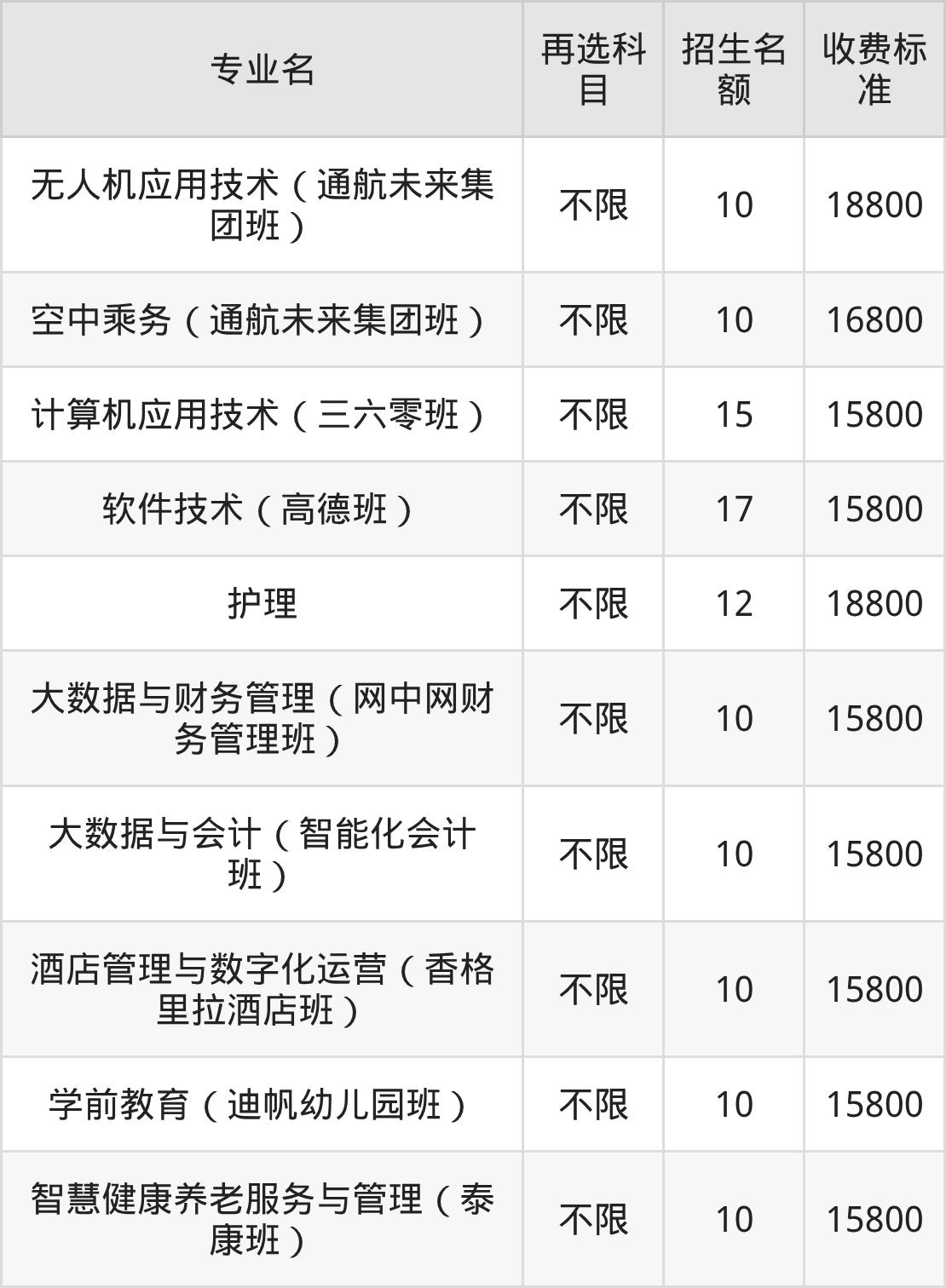 1.无人机应用技术(通航未来集团班):学费是18800元