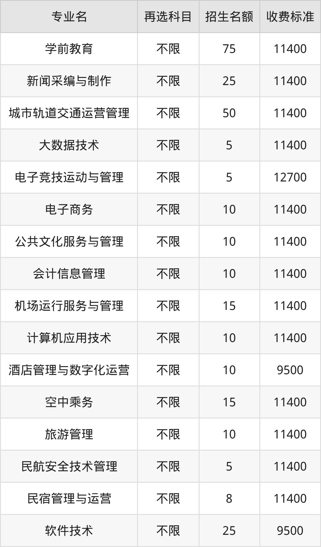 | 高职专科批 | 历史 | 酒店管理与数字化运营 | 10 |