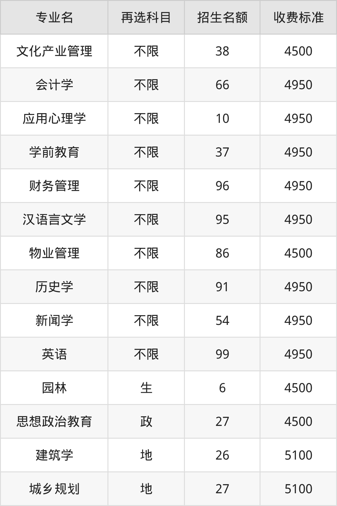 吕梁学院在历史组本科批招生的各个专业,每年的学费是4500元-5100元。招生人数最多的专业是英语,2025年招99人,学费是4950元。
