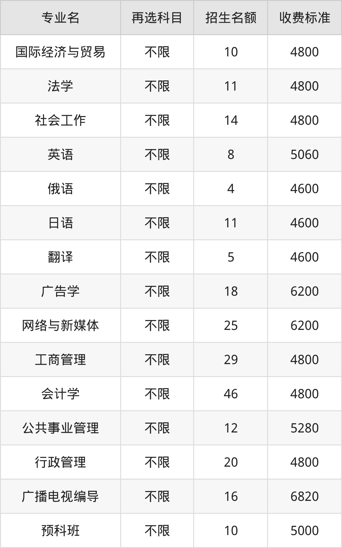 | 本科批 | 历史 | 俄语 | 4 |