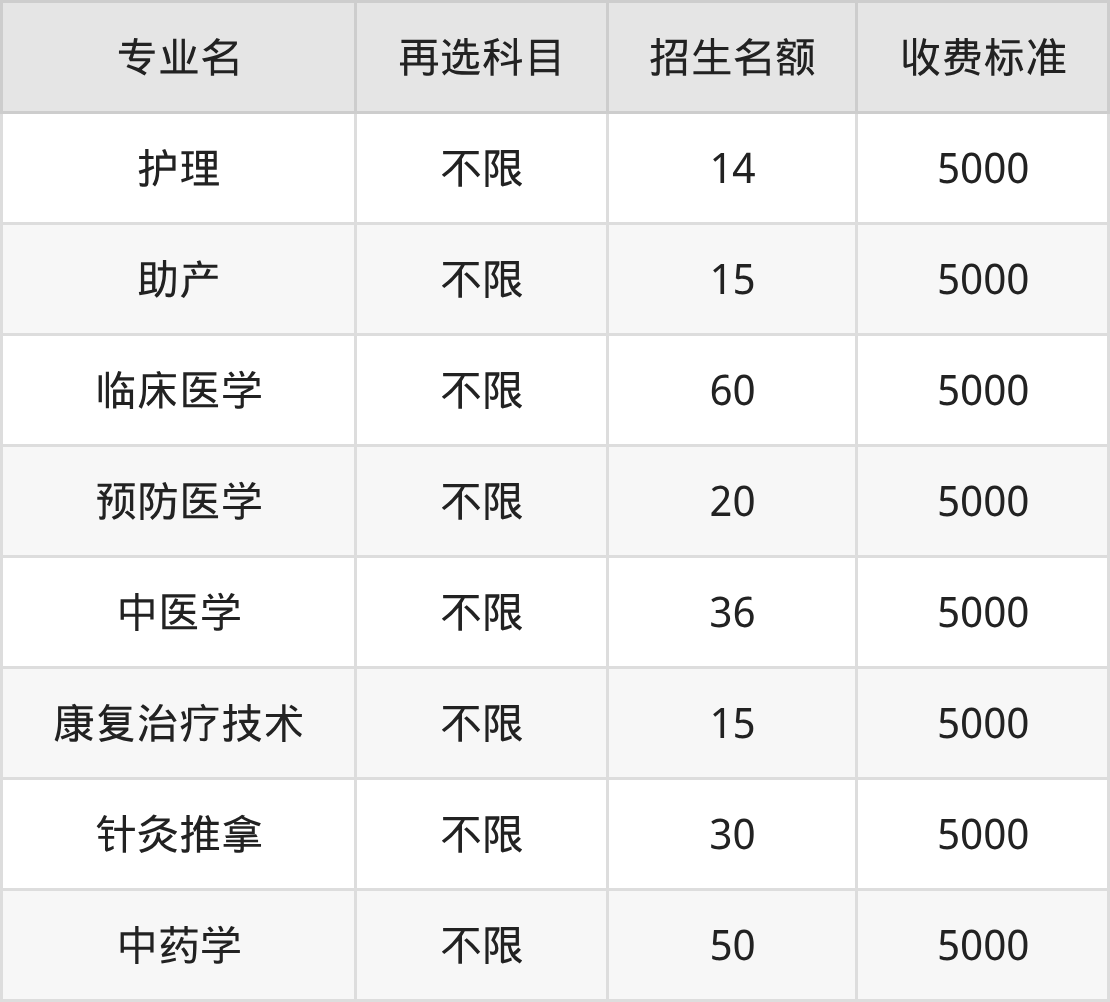 乌兰察布医学高等专科学校物理组高职专科批共计11个招生专业,各专业每年的学费是5000元。