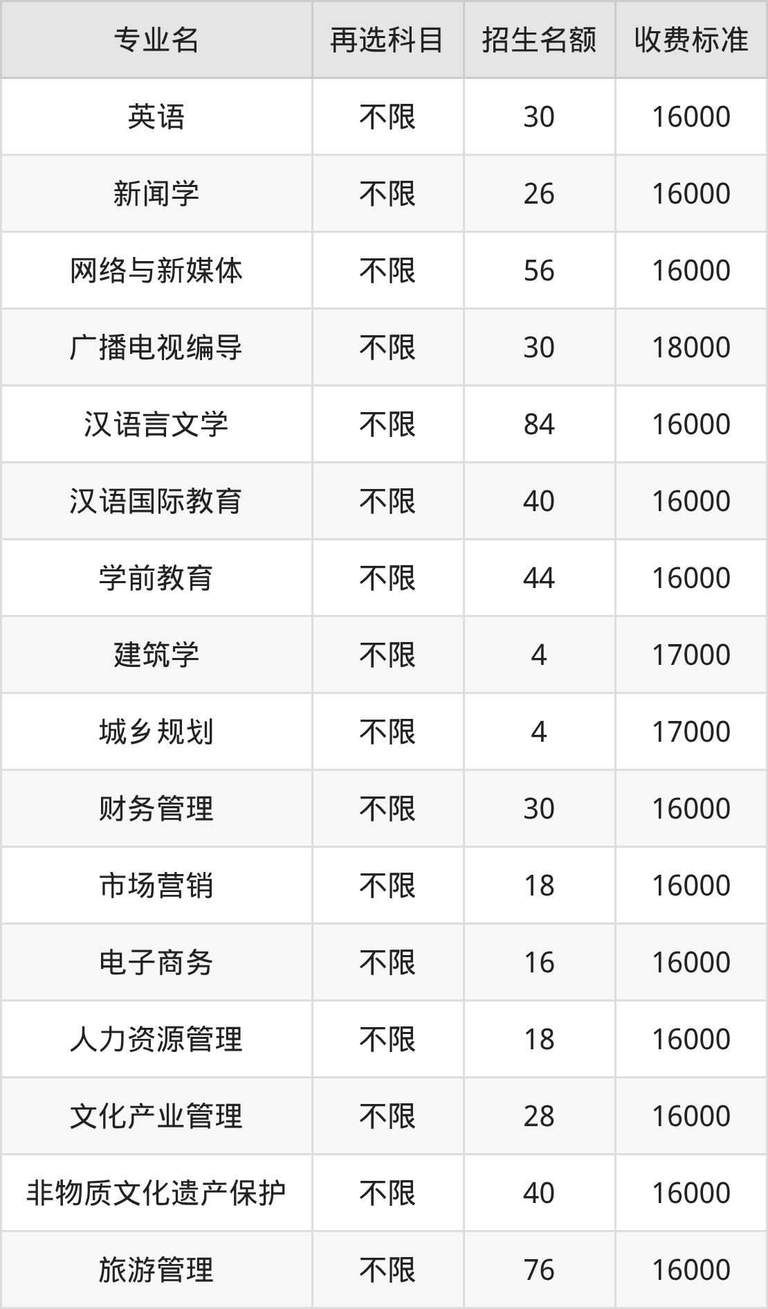 | 本科批 | 历史 | 文化产业管理 | 28 |
