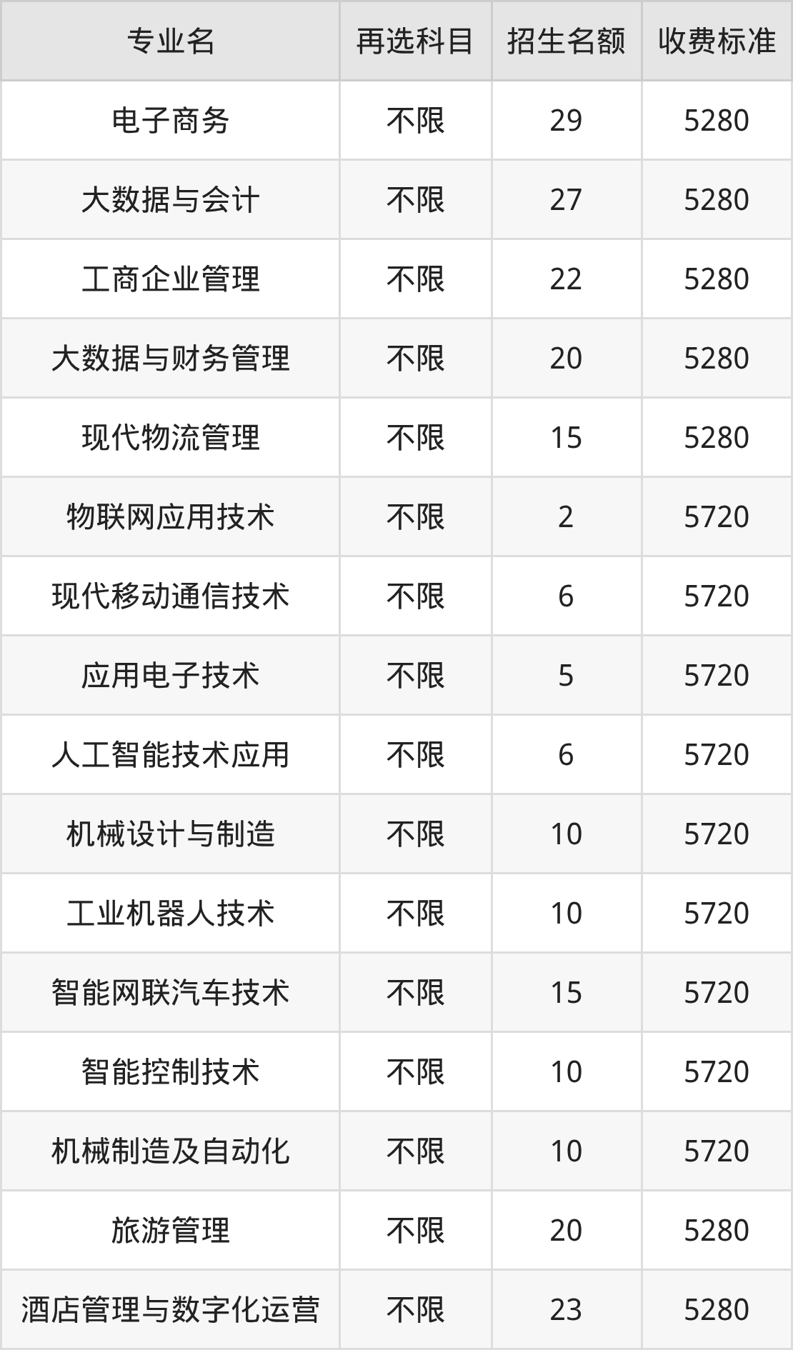 | 高职专科批 | 物理 | 大数据与财务管理 | 20 |