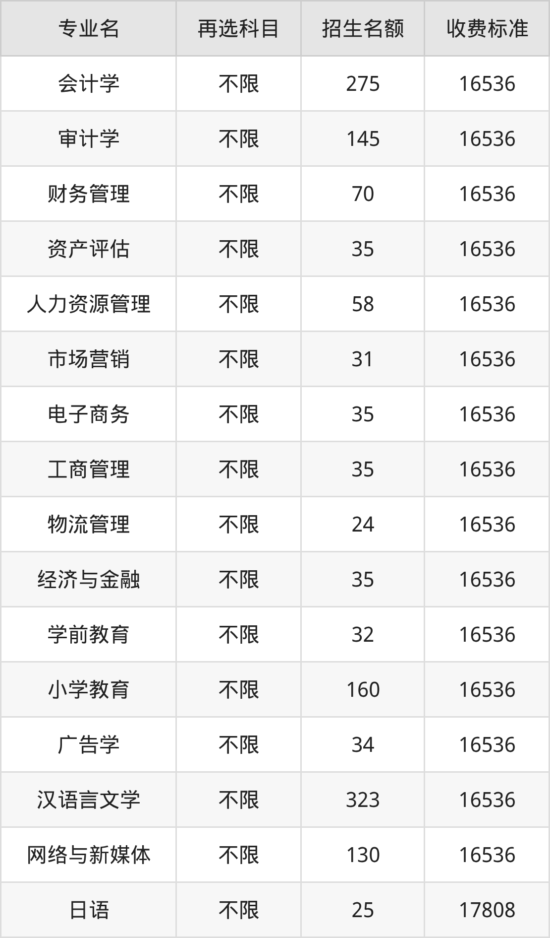 | 本科批B段 | 历史 | 会计学 | 275 |