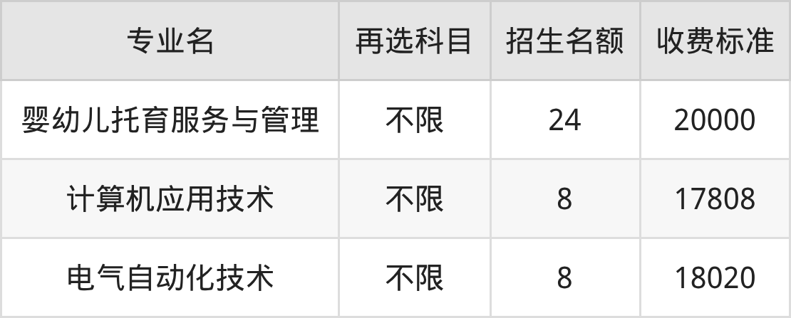 | 高职专科批 | 历史 | 婴幼儿托育服务与管理 | 24 |
