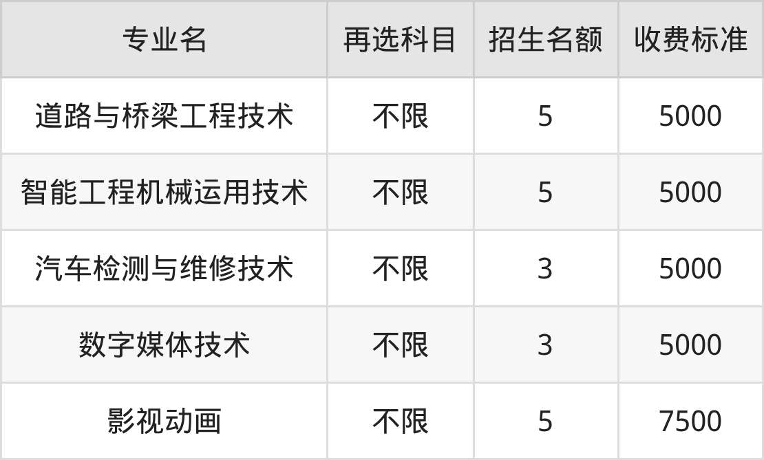 辽宁省交通高等专科学校在历史组专科提前批招生的各个专业,每年的学费是5000元-7500元。招生人数最多的专业是道路与桥梁工程技术,2025年招5人,学费是5000元。
