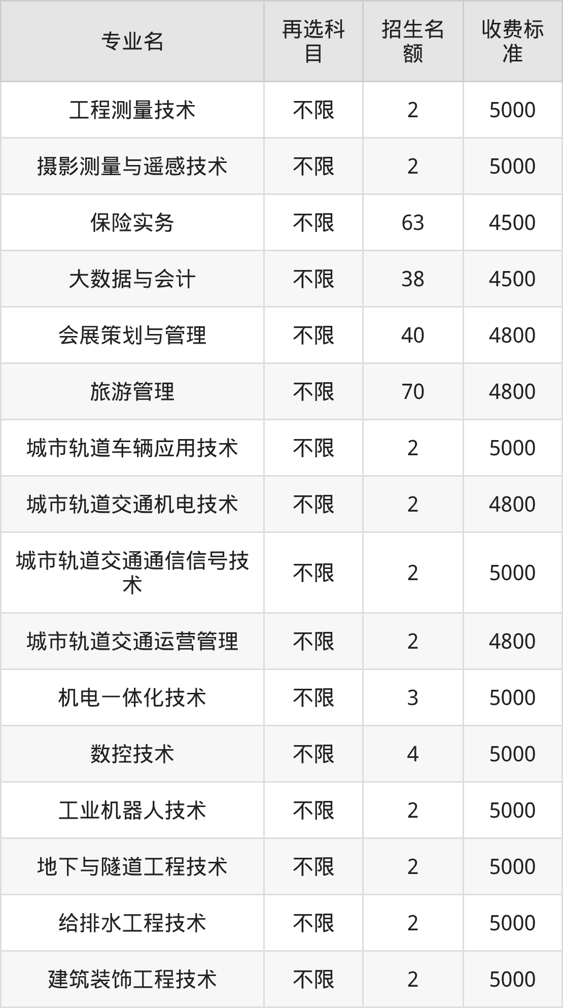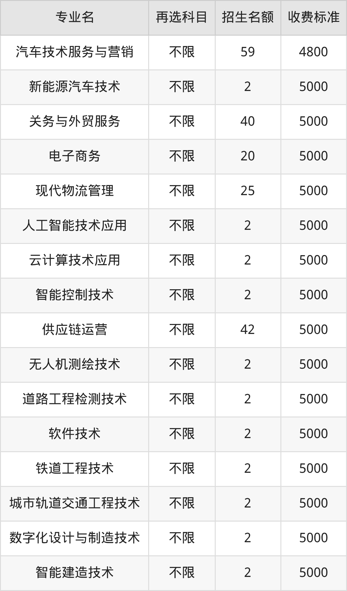 辽宁省交通高等专科学校在历史组高职专科批招生的各个专业,每年的学费是4500元-20000元。招生人数最多的专业是旅游管理,2025年招70人,学费是4800元。