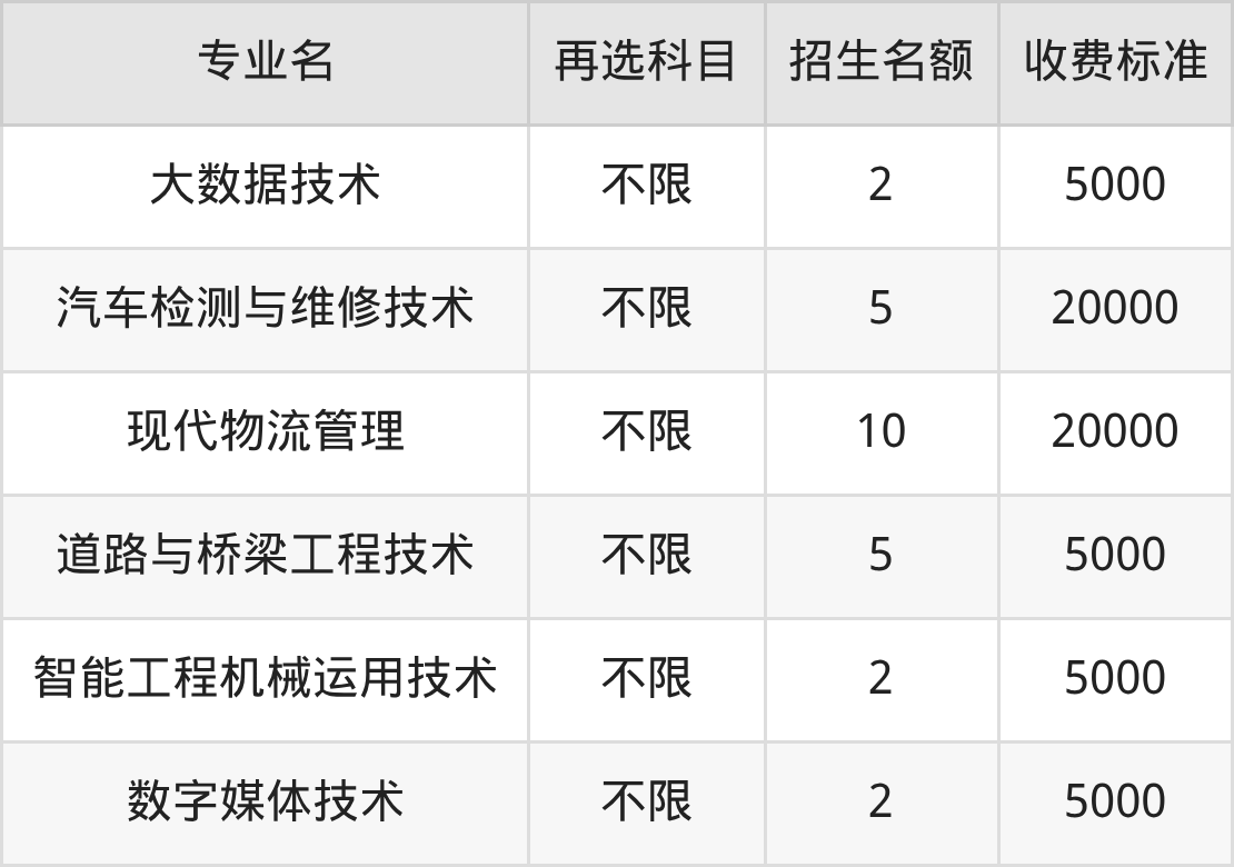 | 高职专科批 | 历史 | 汽车检测与维修技术 | 5 |
