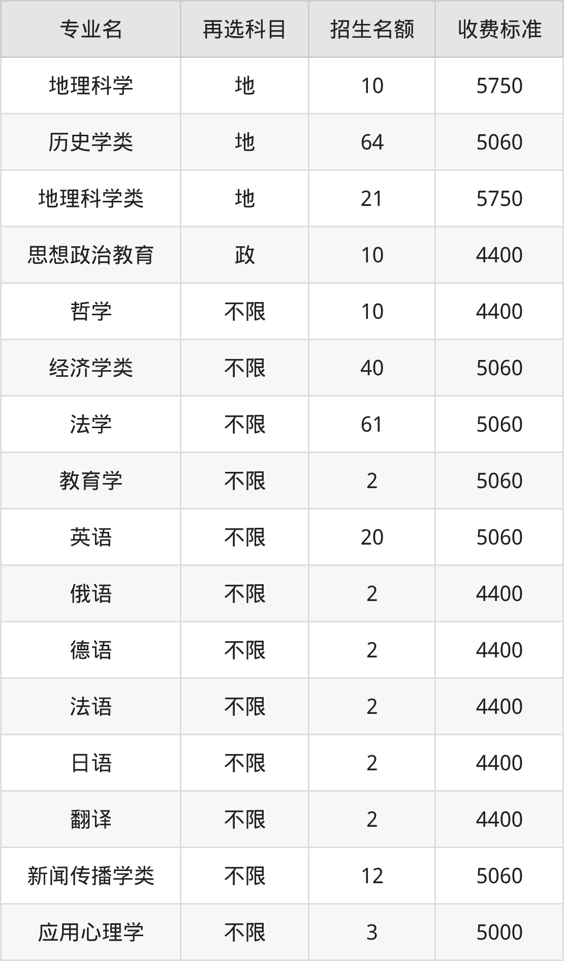 | 本科批 | 历史 | 思想政治教育 | 10 |