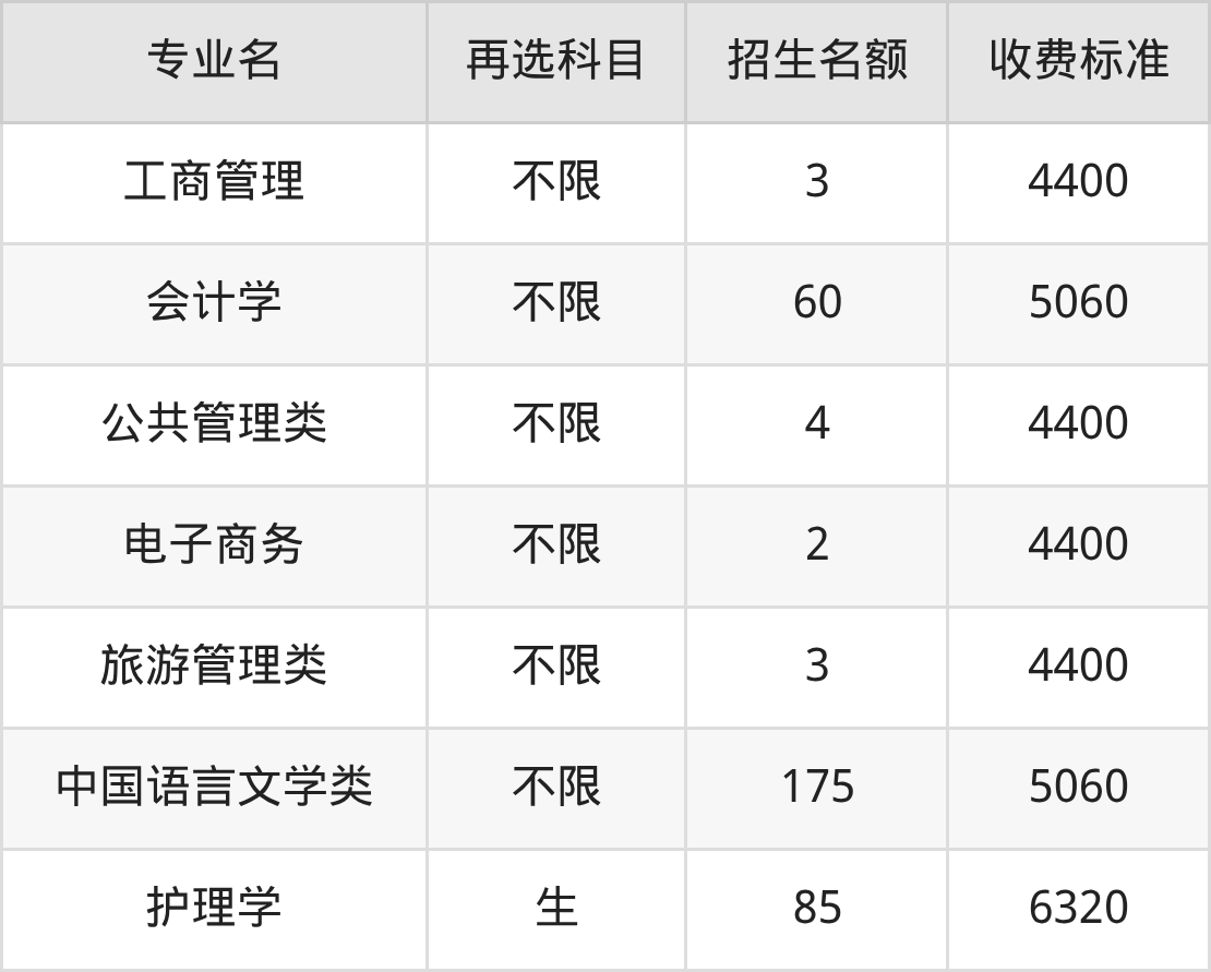 | 批次 | 首选 科目 | 专业名 | 招生 名额 |